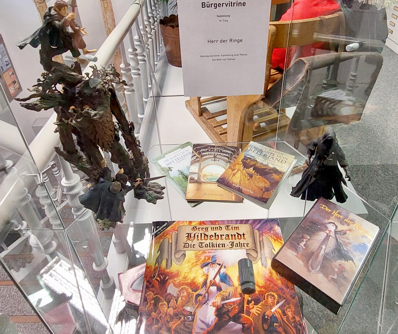 Es gibt wieder Neues zu entdecken in der Bürgervitrine des Stadtgeschichtlichen Museums Waren: Ab sofort sind dort Figuren und Bücher aus der Welt von Tolkien zu bewundern. Wer sich nicht vor dem Höhlentroll oder dem Ringgeist fürchtet und Frodo oder Gollum wiedersehen möchte, der kann sie im Rathaus am Markt bewundern. Die Herr-der-Ringe-Ausstellungsstücke gehören zur einer Sammlung von M. Tolg. Die Bürgervitrine ist ein kleiner Ausstellungsort für Sammlungen oder anderen spannenden Dingen von Einwohnern Warens, die sie auch mal der Öffentlichkeit präsentiert wollen.