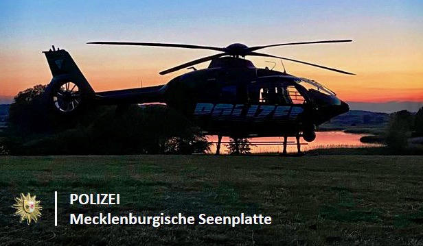 Die Besatzung des Polizeihubschraubers der Landespolizei MV konnte dann das herrenlose Surfbrett auf dem See nahe eines Schilfgürtels lokalisieren und die