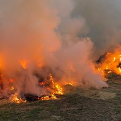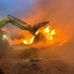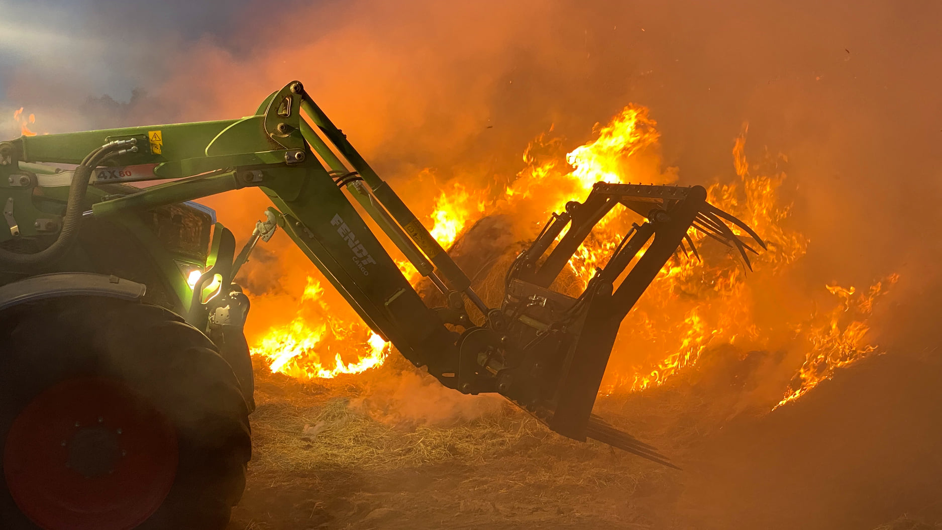 In Spitzkuhn nahe Röbel sind gestern Abend rund 80 Ballen einer großen Heumiete niedergebrannt. Nur durch das schnelle Eingreifen der Landwirte und der Feuerwehr gelang es, die anderen noch größeren Strohmieten vor den Flammen zu schützen. Offenbar geriet die Heumiete durch Selbstentzündung in Brand, jedoch kann auch eine vorsätzliche Brandstiftung nicht gänzlich ausgeschlossen werden.