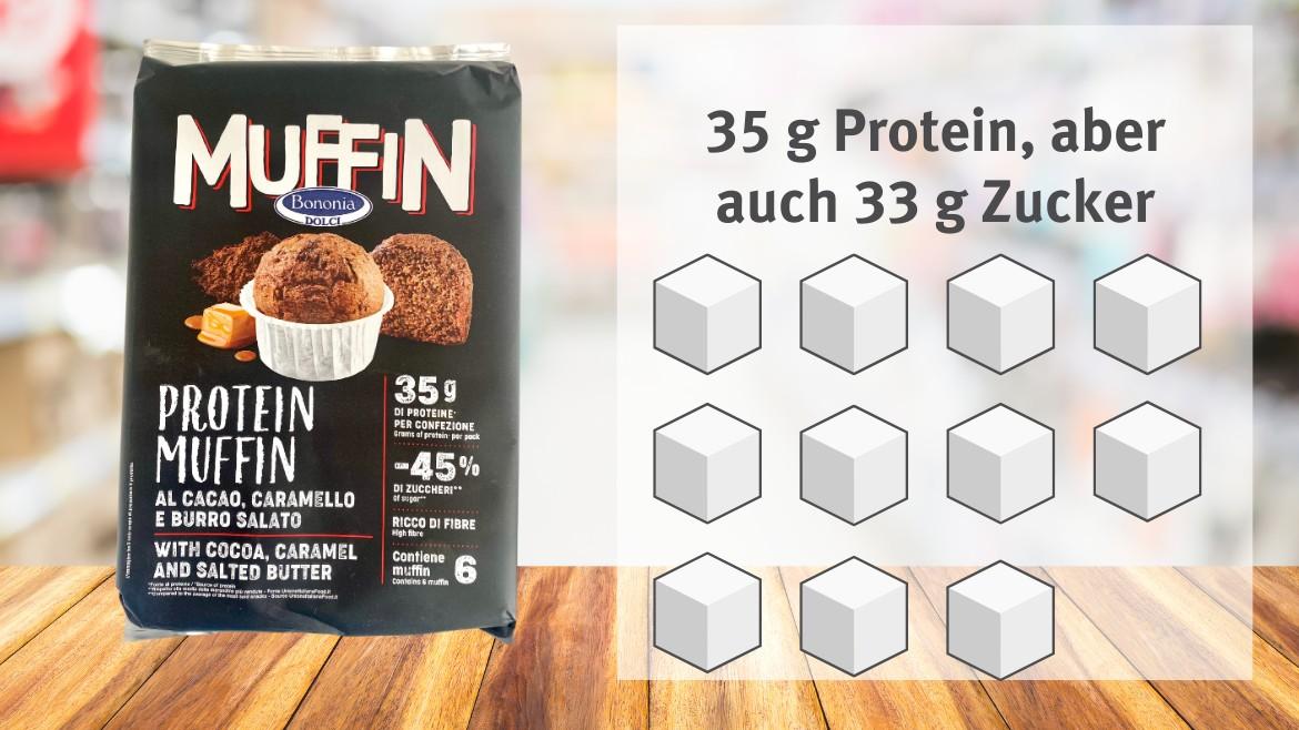 Ein Beispiel ist der Protein Muffin von Bononia Dolci: Auf der Verpackung wirbt der Anbieter mit „35 Gramm Protein pro Packung“. „Die Schachtel enthält jedoch sechs Muffins. Und wer isst die schon alle auf einmal?“, gibt Rauer zu bedenken.