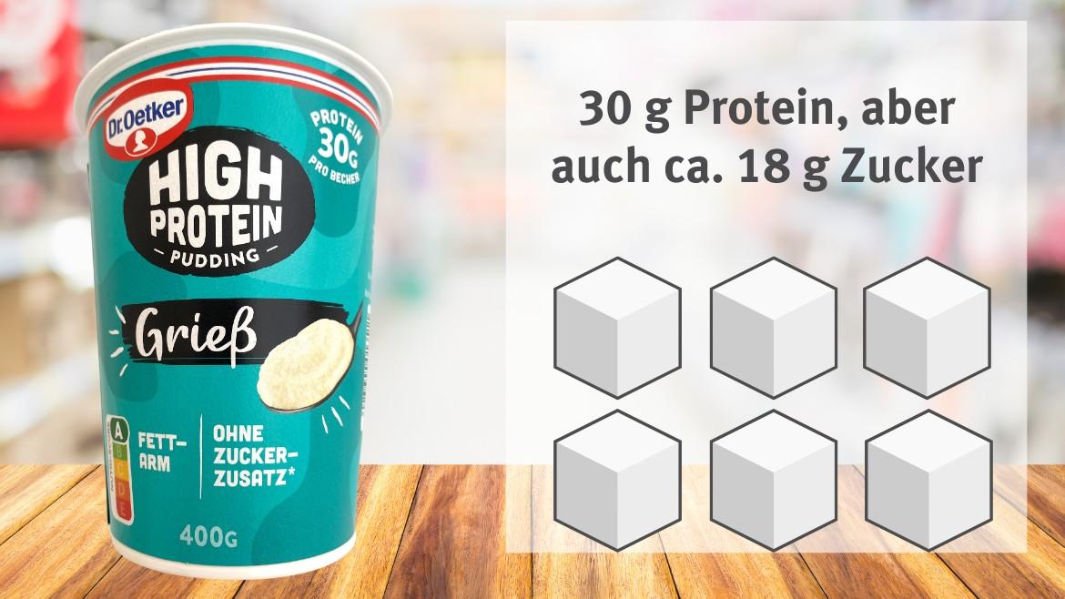 Bei manchen Produkten der Stichprobe stehen die ausgelobten Eiweißmengen in keinem ausgewogenen Verhältnis zum Zuckergehalt. So enthält der Proteinriegel von Mars 10 Gramm Protein, aber auch 18 Gramm Zucker. Wer einen Becher des High Protein Vla Vanille von Zuivelhoeve verzehrt, nimmt fast die Hälfte der von der Deutschen Gesellschaft für Ernährung empfohlenen Tageshöchstmenge von 50 Gramm Zucker zu sich. „Der Hinweis auf zusätzliches Protein soll davon ablenken, dass einige dieser stark verarbeiteten Lebensmittel eigentlich ungesund sind“, warnt Rauer.