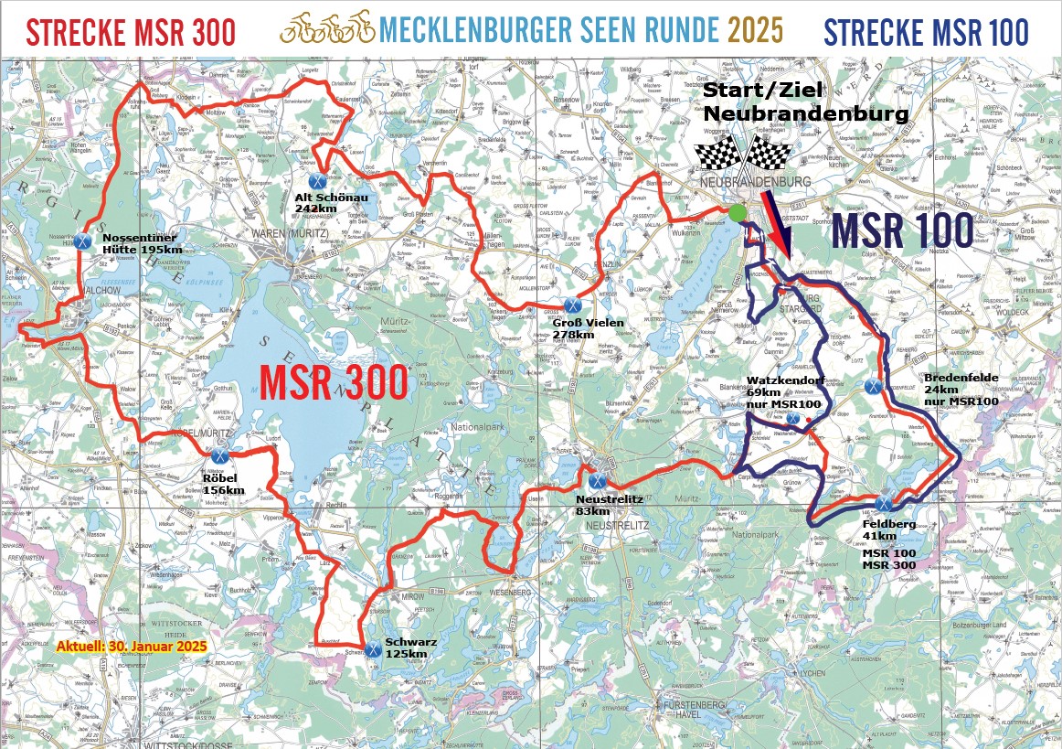 Ab Freitagnachmittag starten in Neubrandenburg die Teilnehmer der Mecklenburger Seenrunde (MSR) gestaffelt ihre jeweiligen Routen. Am Samstag werden die Radler im Zeitraum zwischen 6 Uhr und Mitternacht zurück erwartet. Im Zusammenhang mit der Veranstaltung bittet die Polizei alle Verkehrsteilnehmer entlang der Gesamtstrecke (siehe Karte) – egal ob mit Auto, Lkw, Rad oder zu Fuß unterwegs – um besondere Achtsamkeit. Nach polizeilicher Kenntnis werden zwischen 2000 und 3000 Teilnehmer erwartet. Das wird zu Beeinträchtigungen führen.