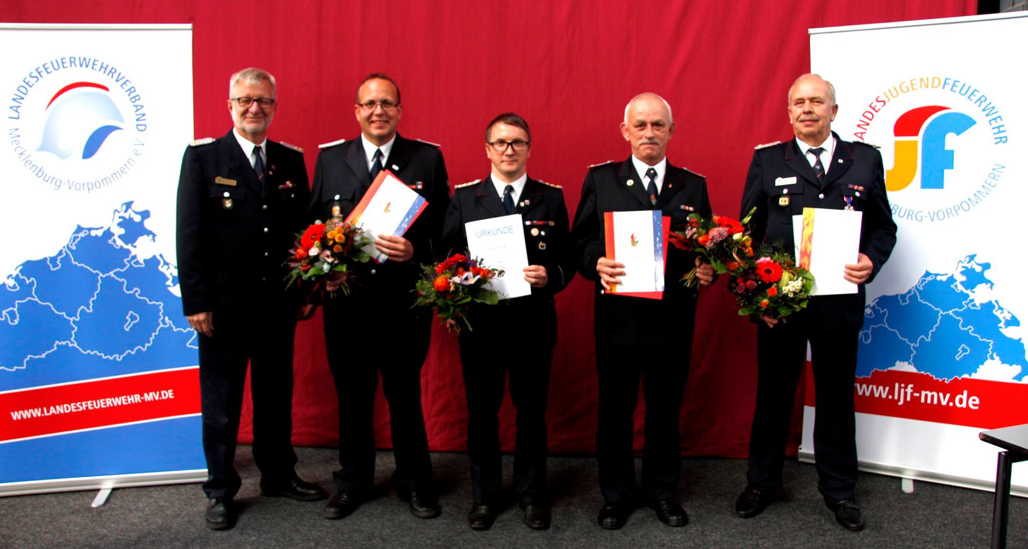 Das ist schon eine ziemlich hohe Auszeichnung! Warens Feuerwehrchef Reimond Kamrath (Mitte) hat heute die Ehrennadel des Landesfeuerwehrverbandes in Gold erhalten.