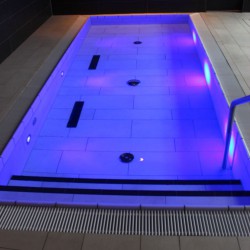 Verwendet wird in Amsee auch die Warener Sole, und zwar im Schwimmbad, im Verneblungsraum und im Dampfbad. Doch nicht alles ist einheimisch, denn die Architekten mussten lange suchen, um natürliche Materialien zu finden, die sowohl denTemperaturen und der Luftfeuchtigkeit, als auch Sole und Chlor gewachsen sind. Und so verwendeten sie an den Wänden rund acht Kilometer österreichisches Tannenholz und 1200 qm italienische Fliesen.