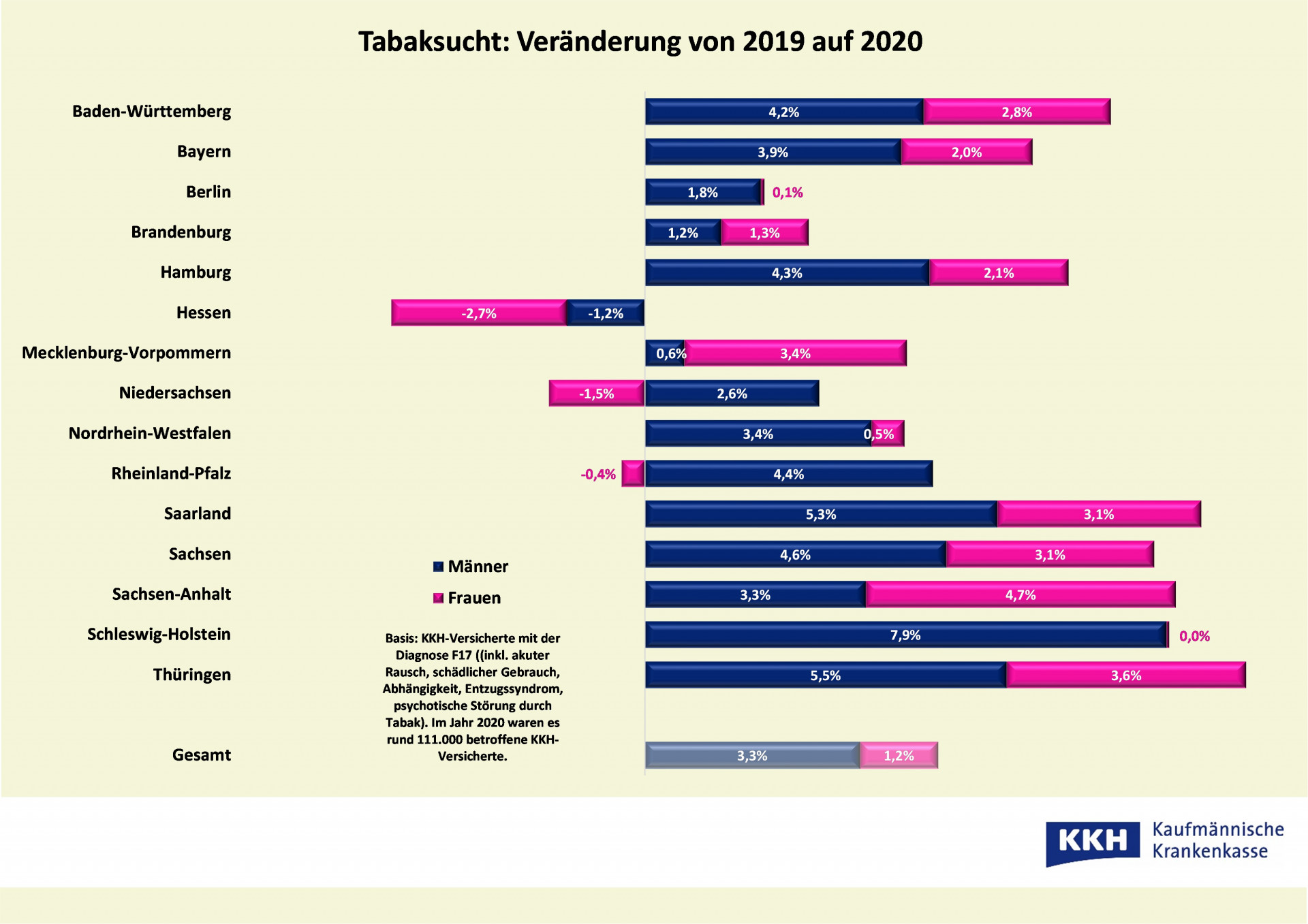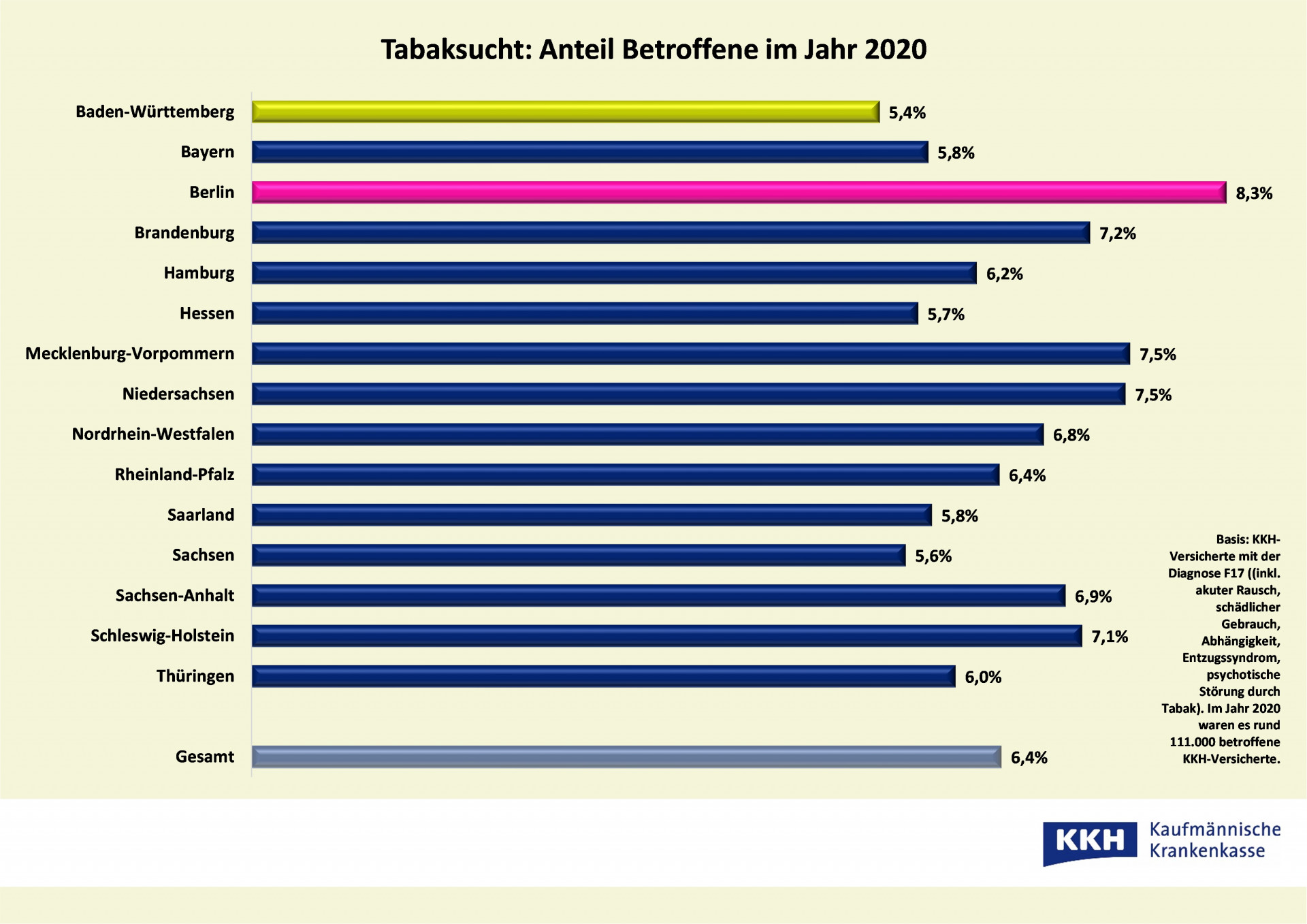 Der Anteil der Betroffenen in MV ist mit 7,5 Prozent ebenfalls mit am größten. Hier liegt der Nordosten 2020 auch auf Platz zwei – zusammen mit Niedersachsen. Trauriger Spitzenreiter ist Berlin mit mehr als acht Prozent. Die wenigsten Tabaksüchtigen registriert die KKH in Baden-Württemberg (rund 5 Prozent). Die Dunkelziffer dürfte allerdings weitaus höher sein, denn die KKH-Daten erfassen nur ärztlich diagnostizierten Tabakmissbrauch. Bedenklich ist auch, dass laut Langzeitstudie „Deutsche Befragung zum Rauchverhalten“ (Debra) während der Pandemie der Anteil der Raucher im Allgemeinen wieder gestiegen ist. Demnach greift derzeit fast ein Drittel der deutschen Bevölkerung ab 14 Jahren zu Zigarette & Co.