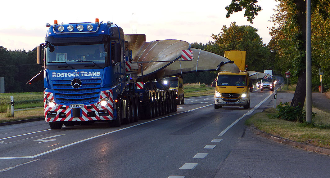 Heute Abend um 21 Uhr werden wieder zwei große Schiffspropeller vom Mecklenburger Metallgusswerk in die weite Welt geschickt. Die Schwerlaster, die wie immer nicht überholt werden können, fahren über die B 192 zur Anschlussstelle Röbel der A 19. Zwei weitere Propeller werden am kommenden Donnerstag, 16. Oktober, ebenfalls ab 21 Uhr über die B 192 zur Anschlussstelle Waren der A 19 transportiert.