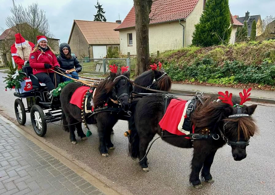Gut eine Woche vor Heiligabend waren der Weihnachtsmann und seine Helfer heute schon mal in Gotthun unterwegs und haben sich auch von dem miesen Regenwetter nicht beirren lassen. Denn es galt wieder, viele Kinderaugen zum Leuchten zu bringen. Seit Jahren ist diese Tradition in Gotthun ein fest verankerter Bestandteil der Weihnachtszeit, der nicht nur die Kleinen begeistert, sondern auch die Großen mit Freude erfüllt. Der Weihnachtsmann kommt mit Kutsche und sogenannter Einhorn-Anspannung. „Mit Glockenklang und Lächeln hat er den Zauber von Weihnachten direkt ins Dorf gebracht. Es sind genau solche Momente, die die Gemeinschaft stärken und das Herz wärmen – ein Stück Weihnachten, das bleibt“, schreibt Franzi an „Wir sind Müritzer“.