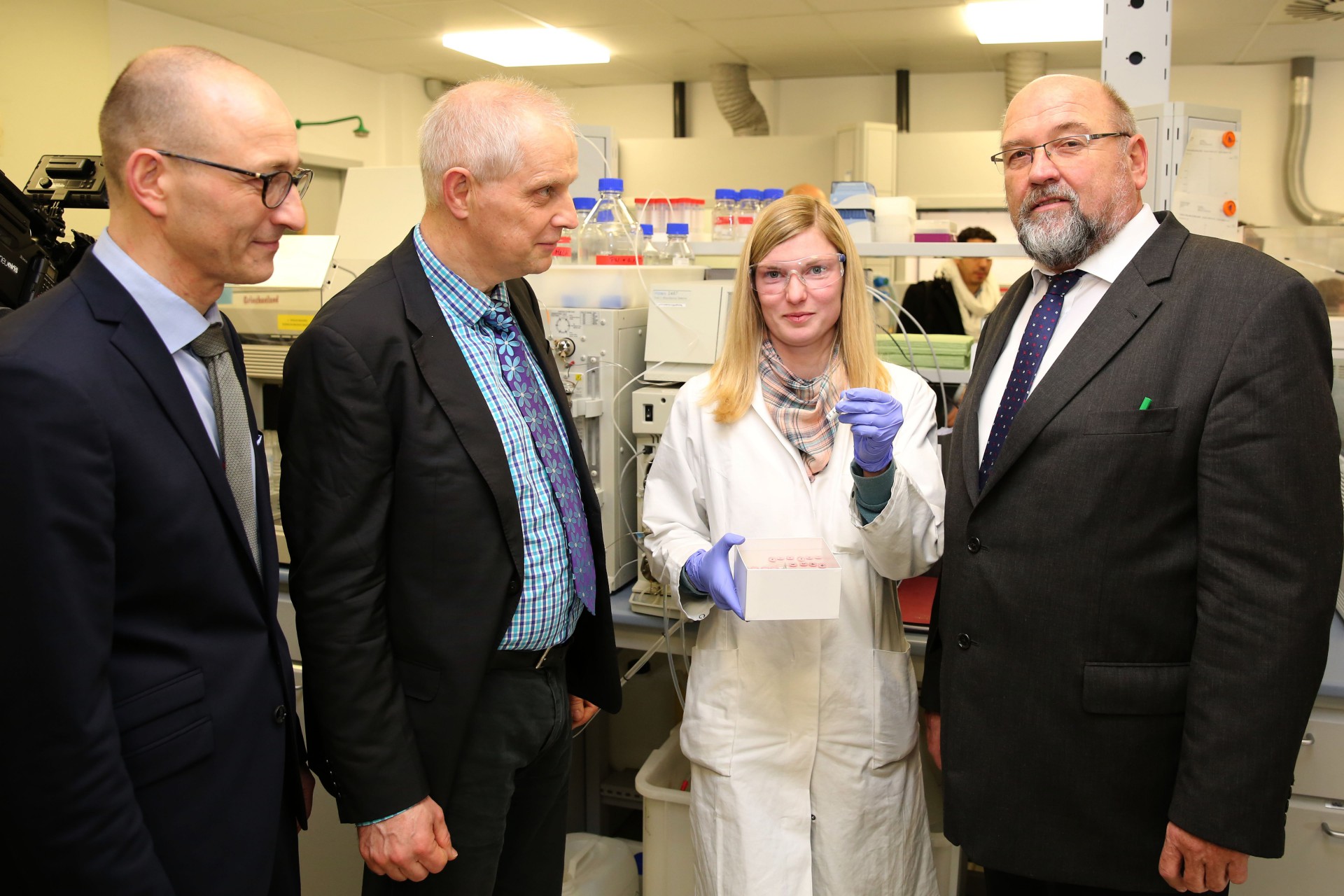 Mecklenburg-Vorpommerns Wirtschaftsminister Harry Glawe hat in Teterow gemeinsam mit der Miltenyi Biotec GmbH, der Universitätsmedizin Rostock und der Universitätsmedizin Greifswald ein neuartiges Verbundforschungsvorhaben vorgestellt. Im Fokus steht dabei die Entwicklung von Immuntherapien für Patienten mit Bauchspeicheldrüsenkrebs und Darmkrebs. „Das ist ein ambitioniertes und vor allem sehr innovatives Vorhaben. Bei Erfolg können viele Menschen von der heimtückischen Krankheit Krebs gerettet werden. Wir wollen die Chance nutzen, dass in der Zukunft in Teterow patientenspezifische Impfstoffe gegen Darm- und Bauspeicheldrüsenkrebs sowie die dazugehörige Medizintechnik entwickelt und produziert werden“, so Glawe.