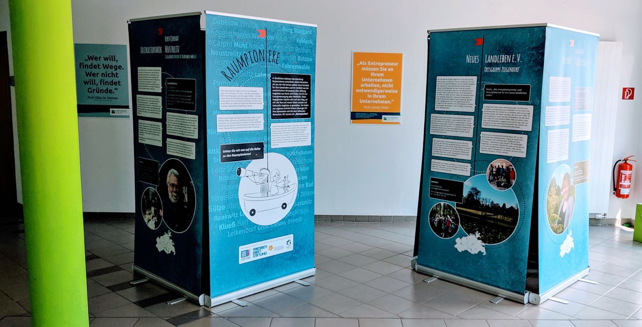 Zahlreiche Beispiele dafür zeigt die Wanderausstellung „Raumpioniere in M-V“. Sie will damit diese Persönlichkeiten und Aktivitäten wertschätzen und zu weiteren anregen. Die Ausstellung wurde von der Arbeitsgemeinschaft „Daseinsvorsorge in ländlichen Räumen“ des Landesfrauenrates M-V konzipiert und in Kooperation mit der Friedrich-Ebert-Stiftung sowie unterstützt von der Ehrenamtsstiftung umgesetzt.