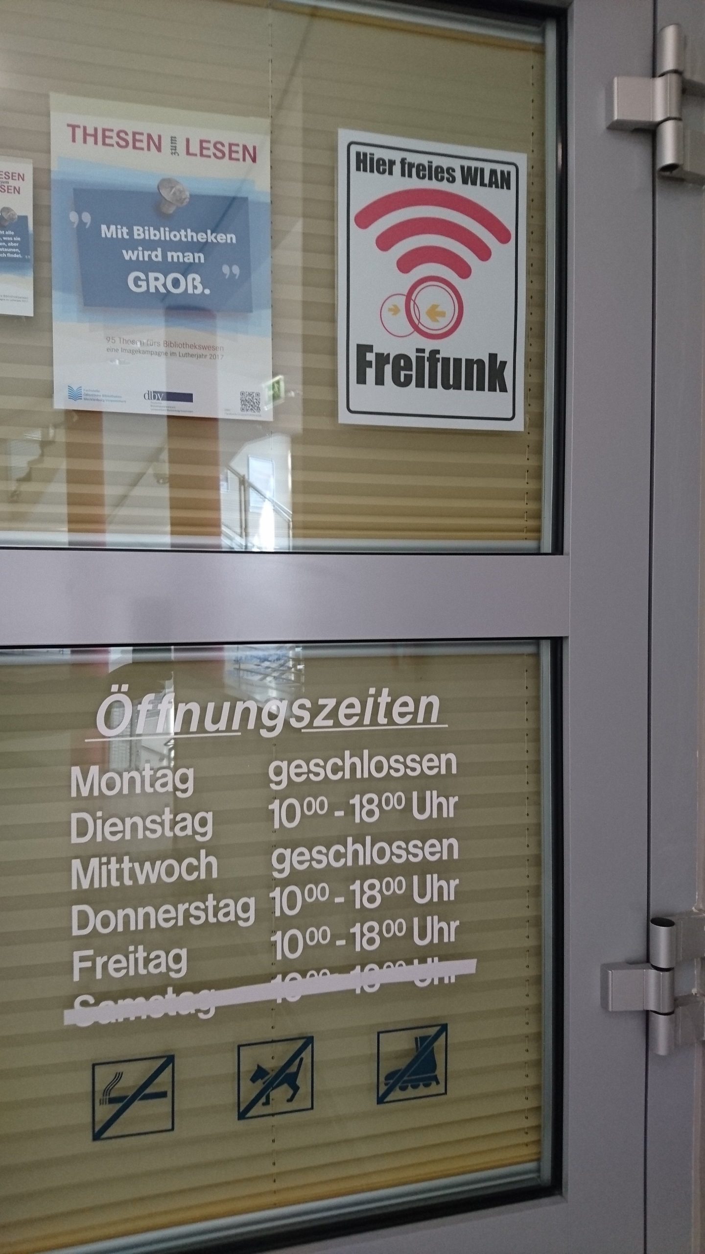 In Neubrandenburg ist die Regionalbibliothek, die auch eine sehr aktive ONLEIHE betreibt, sechs Tage in der Woche geöffnet.