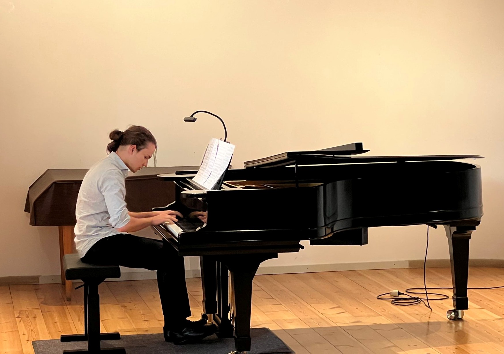 Bild: Sebastian Michalansky am Steinway-Flügel der Kreismusikschule