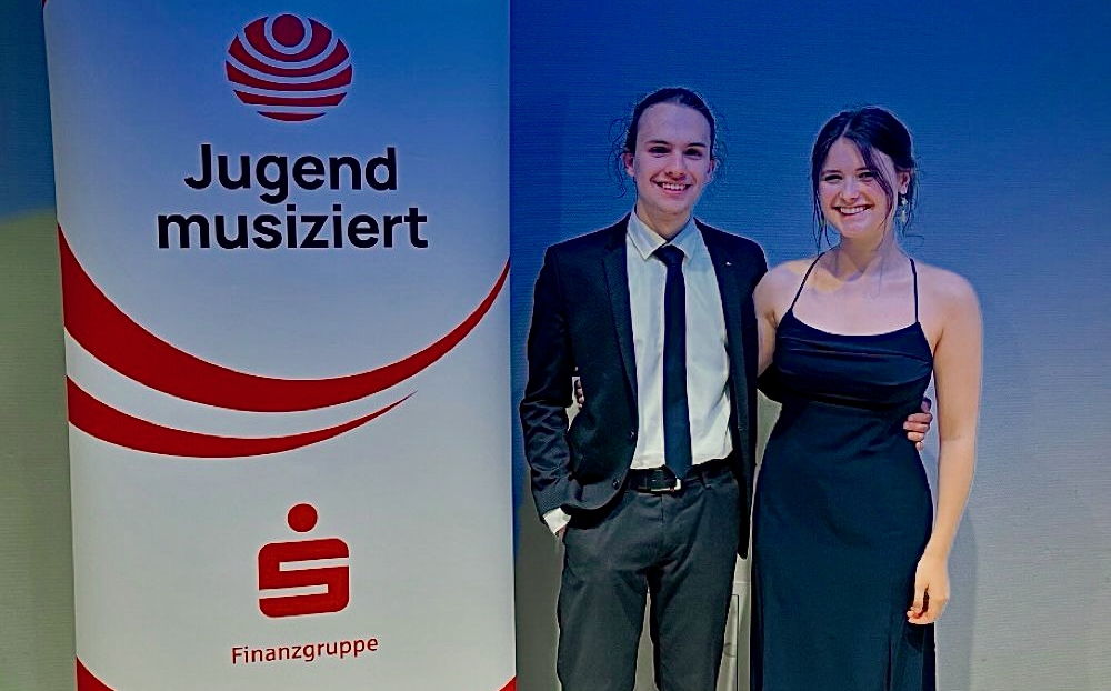 Mit dabei auch zwei Warener: Diana Simon in der Kategorie Gesang (solo) und Sebastian Michalansky in der Kategorie Klavier (solo). Beide sind auf dem Foto zu sehen.