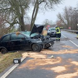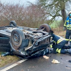 Zum Einsatz kamen neben dem Rettungsdienst und der Polizei auch die Kameraden der Warener Feuerwehr. Der Pkw der jungen Frau hat nur noch Schrottwert.
