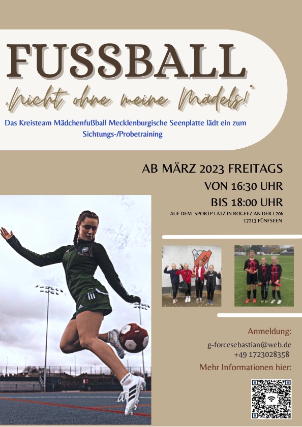Der Verein möchte im Landkreis Mecklenburgische Seenplatte einen Stützpunkt Kreisteam Mädchenfußball in Rogeez aufbauenZunächst alle zwei Wochen jeweils freitags von 16.30 bis 18 Uhr und später vielleicht einmal die Woche trainiert werden.