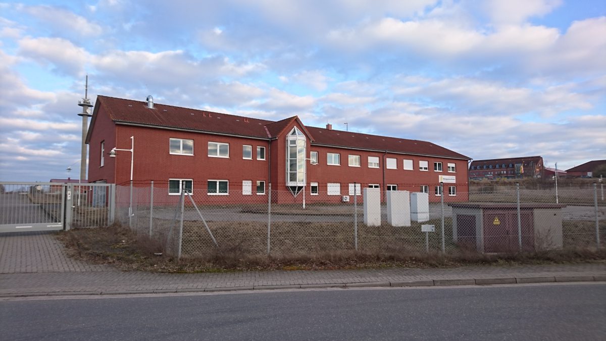 Die Immobilie wurde 1992 gebaut und verfügt über 28 000 Quadratmeter Fläche. Dazu gehören zwei rot verklinkerte Büro- und Werkstattgebäude, die derzeit an einen Bildungsträger und an einen Hersteller für Dämmplatten vermietet sind. Dazu kommen zwei befestigte Freilager sowie fast 70 Parkplätze.