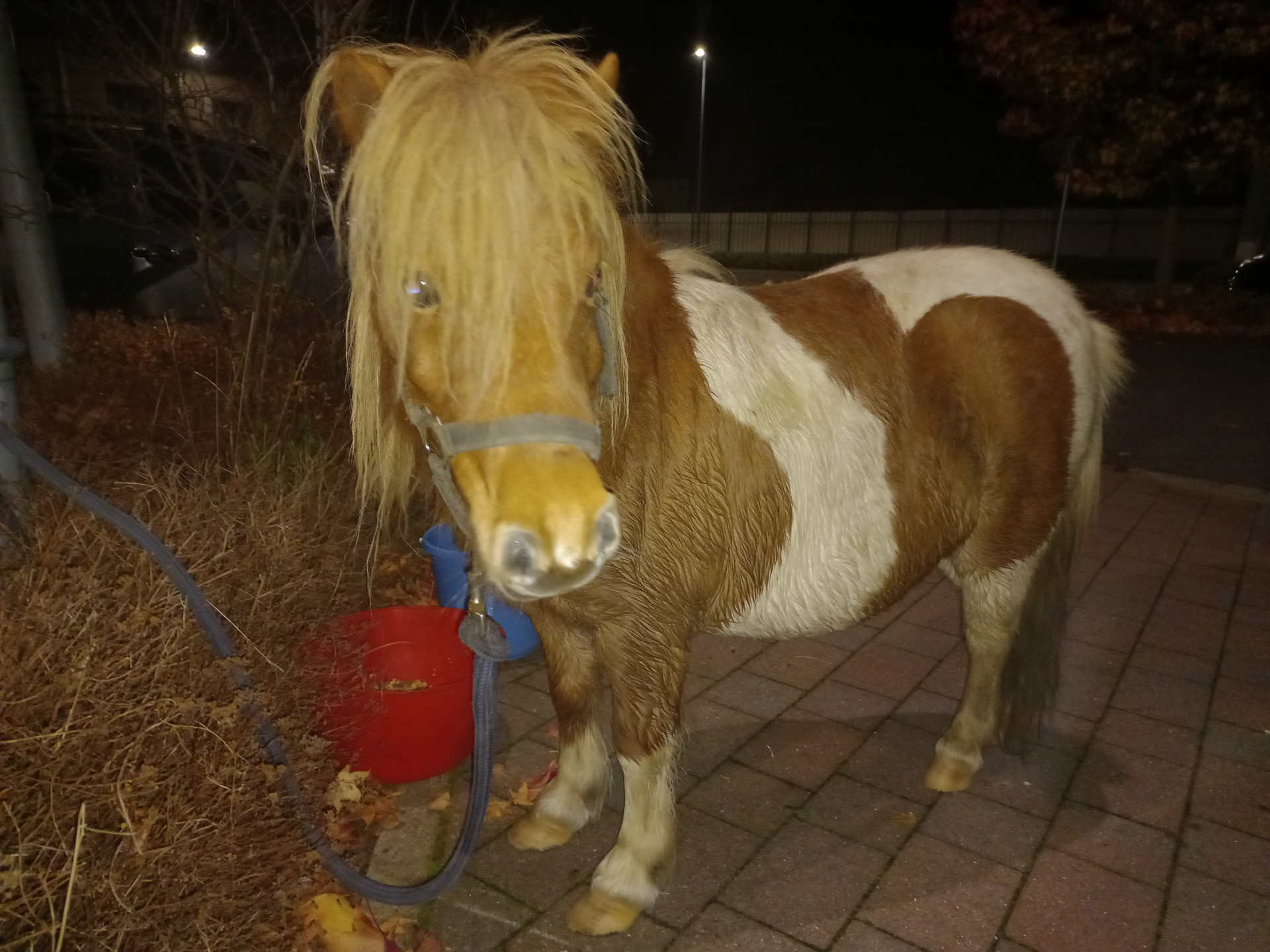 So wurde ein Pferdehalter aus der Nähe gefragt, aber das Pony gehörte ihm nicht. Trotzdem kam der Fachmann, hatte etwas zu Futtern dabei, und das Pony ließ sich einfangen. Nun war guter Rat teuer. Wie eine Polizeisprecherin sagte, mussten Fachmann und Pony erst mitkommen zum Revier, der Fall wurde ordnungsgemäß aufgenommen. Danach holte der Pferdehalter einen Anhänger und nahm das Tier erstmal mit.