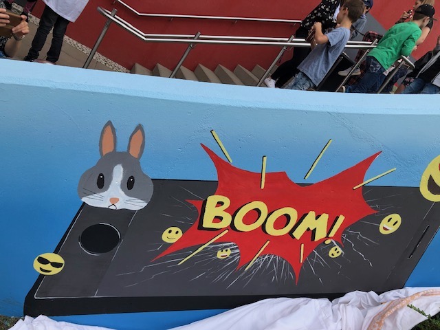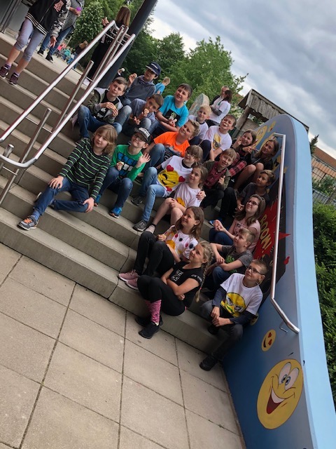 Wieder haben die Grundschüler, die jetzt ihre Grundschulzeit beenden, ein Betonelement am Hortzentrum künstlerisch gestaltet. In diesem Jahr war das Thema ganz modern, es ging um „Smileys und Emojis“.