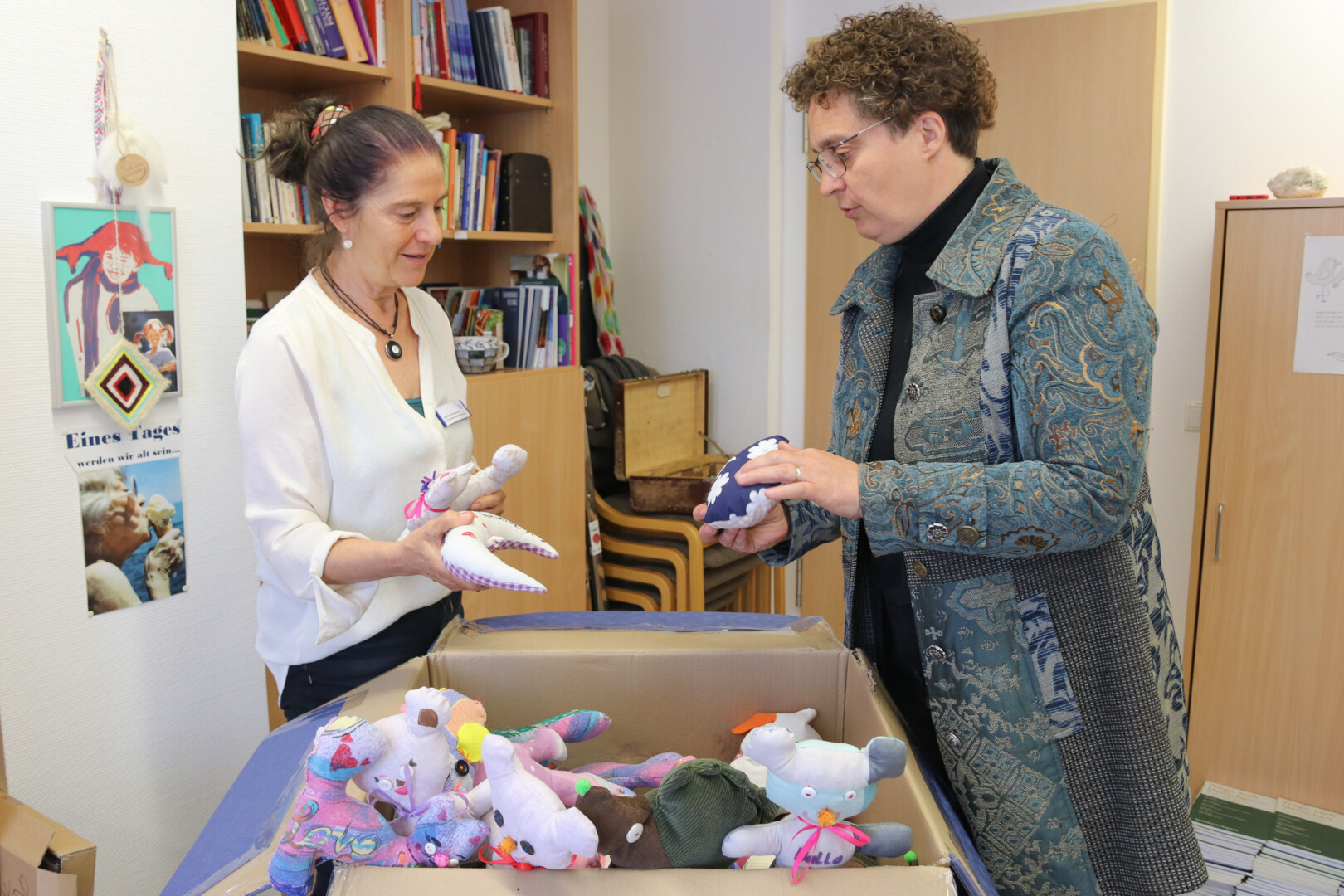 Andrea Rosenow hat schon viele davon an kleine Patienten verschenkt und freut sich besonders, dass es ein Geschenk von Kindern für Kinder ist. Die Lieferung wird nicht die letzte sein. Nach den Sommerferien wird weitergenäht, kündigt Silke Pfuhler an.