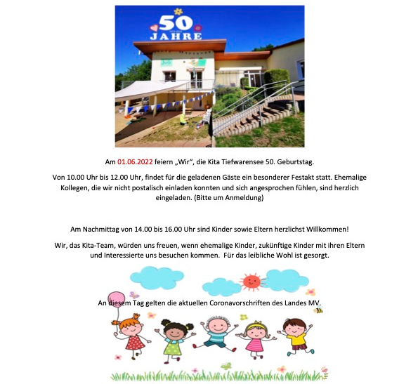Ein großes Fest wird gerade organisiert. Die Mitarbeiter würden sich freuen, wenn an diesem Tag auch ehemalige und zukünftige Kita-Kinder sowie einstige Mitarbeiter vorbei schauen: