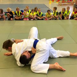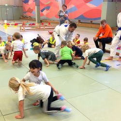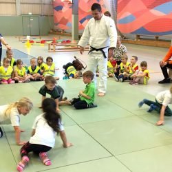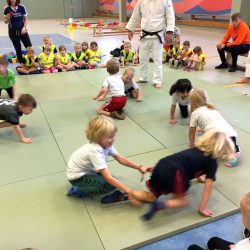 Jeder kleiner Sportler bekam eine Urkunde und eine Medaille mit dem Maskottchen Wuff-Paff, dass von Kindern entwickelt wurde. Aufgelockert wurde das Sportfest durch eine Judovorführung des Vereinssportlehrers des SKV, Maximilian Mayer, und Jonas Scheffler. Die gefiel den Kindern so gut, dass sie um Zugabe baten. Ganz Mutige wagten sich danach selbst auf die Judomatte.