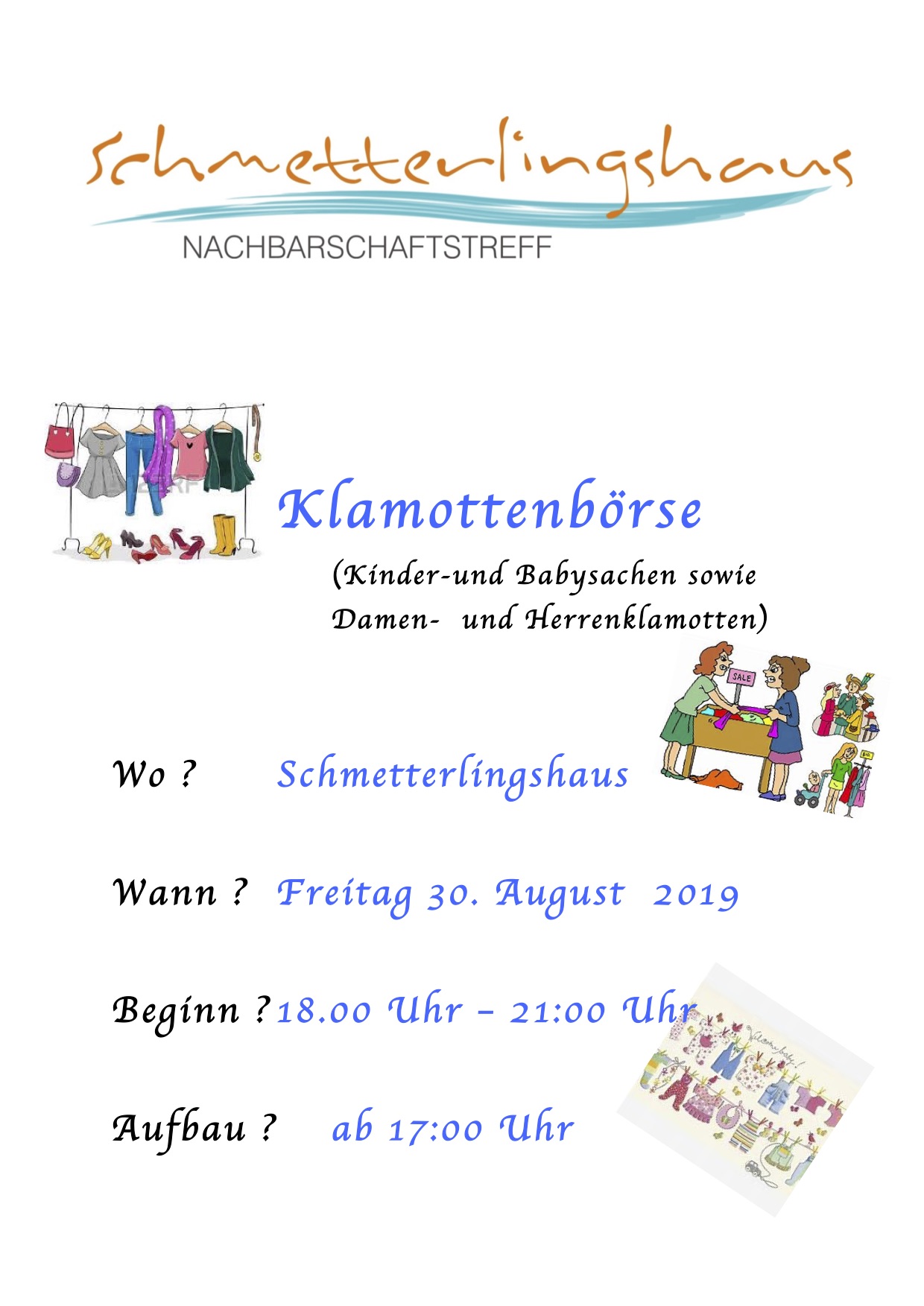„Klamottenbörse“ heißt es am 30. August erstmal im Schmetterlingshaus der WOGEWA in Waren-West. Denn anders als bisher können neben Baby- und Kindersachen auch Damen- und Herrenbekleidung angeboten werden.