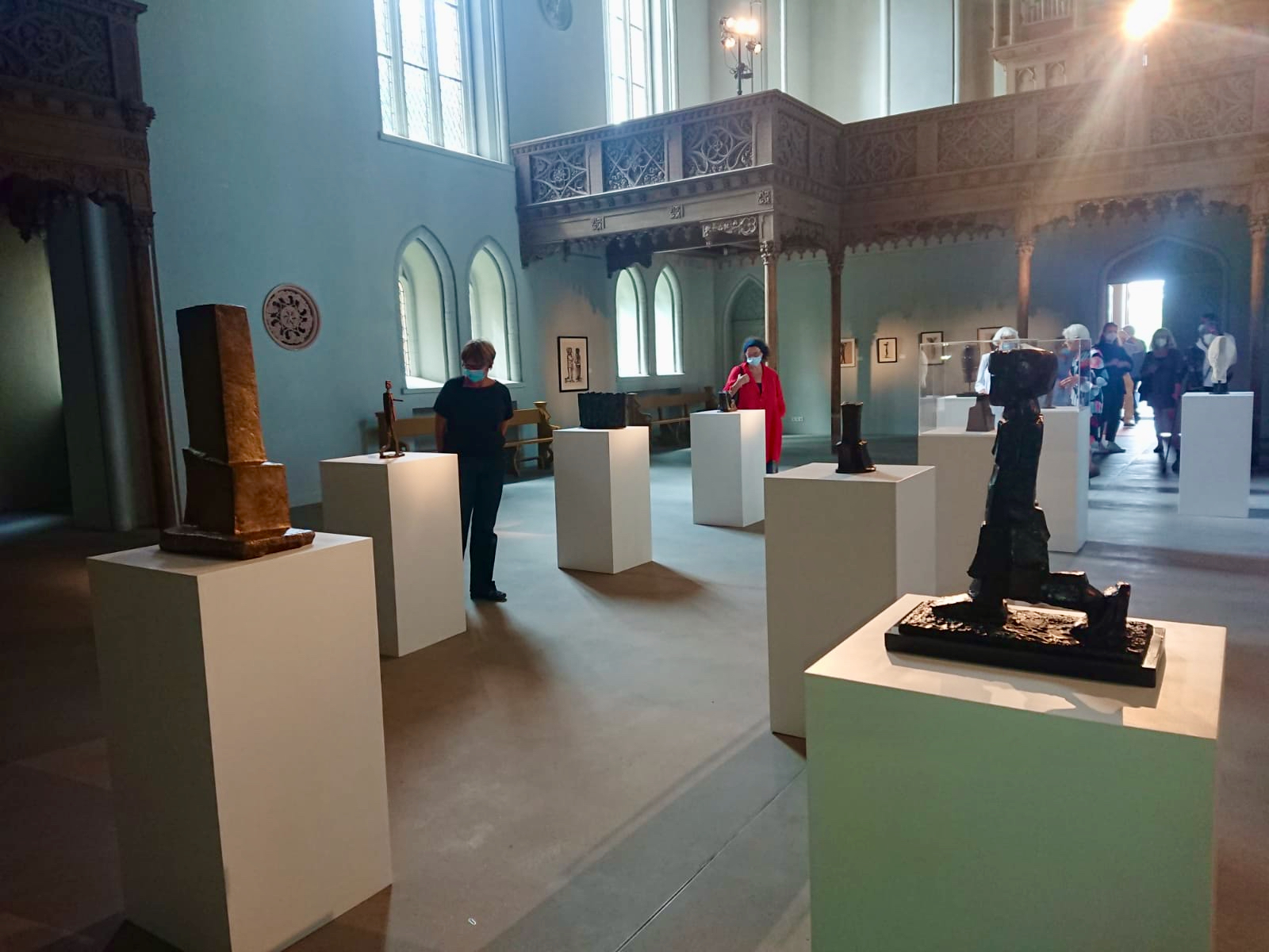Der Bildhauer ist im Gegensatz zu anderen Vertretern seiner Zunft bei der figürlichen Darstellung geblieben. Wer sich seine Werke länger anschaut, findet viele Gedanken und Assoziationen. Bei manchen Arbeiten kann man auch Charakterzüge von Bekannten entdecken. Wie gesagt, man muss sich Zeit nehmen – oder Gesprächspartner wie die Wiener Kunstexpertin Gabriele Stöger-Spevak treffen. Die Wienerin war zur Eröffnung in die Schlosskirche gekommen und überrascht, wie Ausstellungsort und die Wotruba-Sammlung zueinander passen.