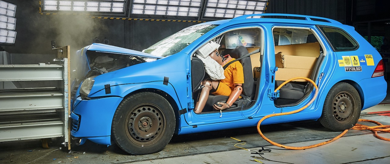 Die Möbelpakete reißen die Vordersitze teilweise aus den Verankerungen und treffen Fahrer und Beifahrer. Herumfliegende Kleinteile prallen im Crashtest so hart auf den Kopf des Fahrers, dass dieser im Ernstfall lebensbedrohlich verletzt worden wäre. Die Ladung von 145 kg wird bereits bei der Crashgeschwindigkeit von nur 45 km/h zum lebensgefährlichen Geschoss.