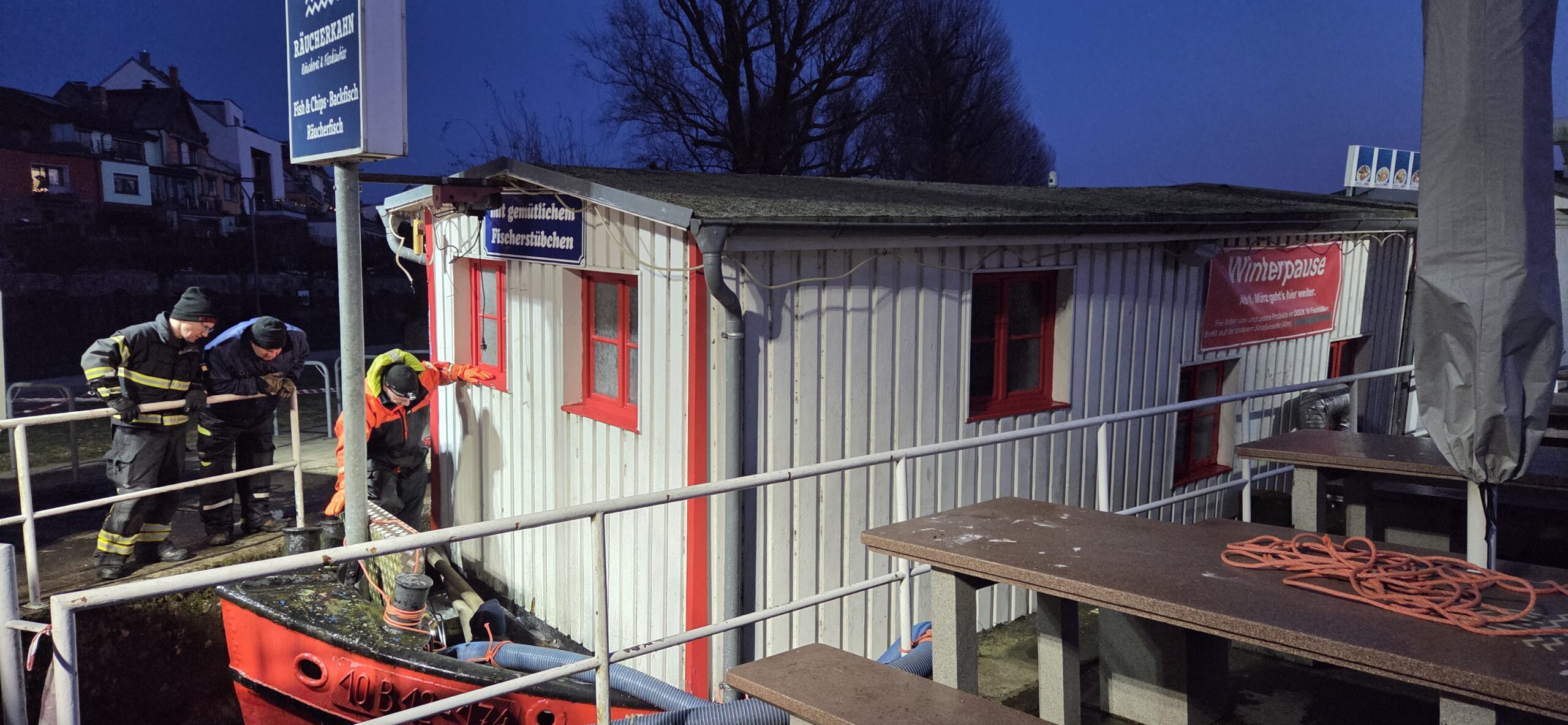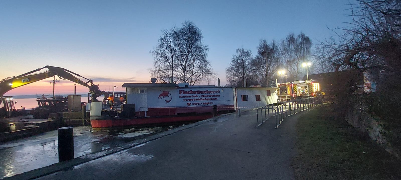 Seinen Angaben zufolge konnten am Schiffskörper keine Beschädigung gefunden werden. Vielmehr habe das Dilemma offenbar – wie schon anfangs vermutet – eine geplatzte Wasserleitung ausgelöst. Weitere Prüfungen sollen folgen. Auch jetzt liege der Räucherkahn noch ein bisschen schräg. Das liege an dem Restwasser im Schiffskörper und sei ungefährlich.