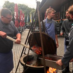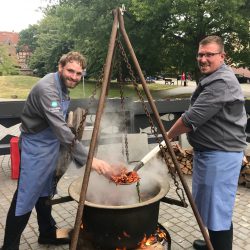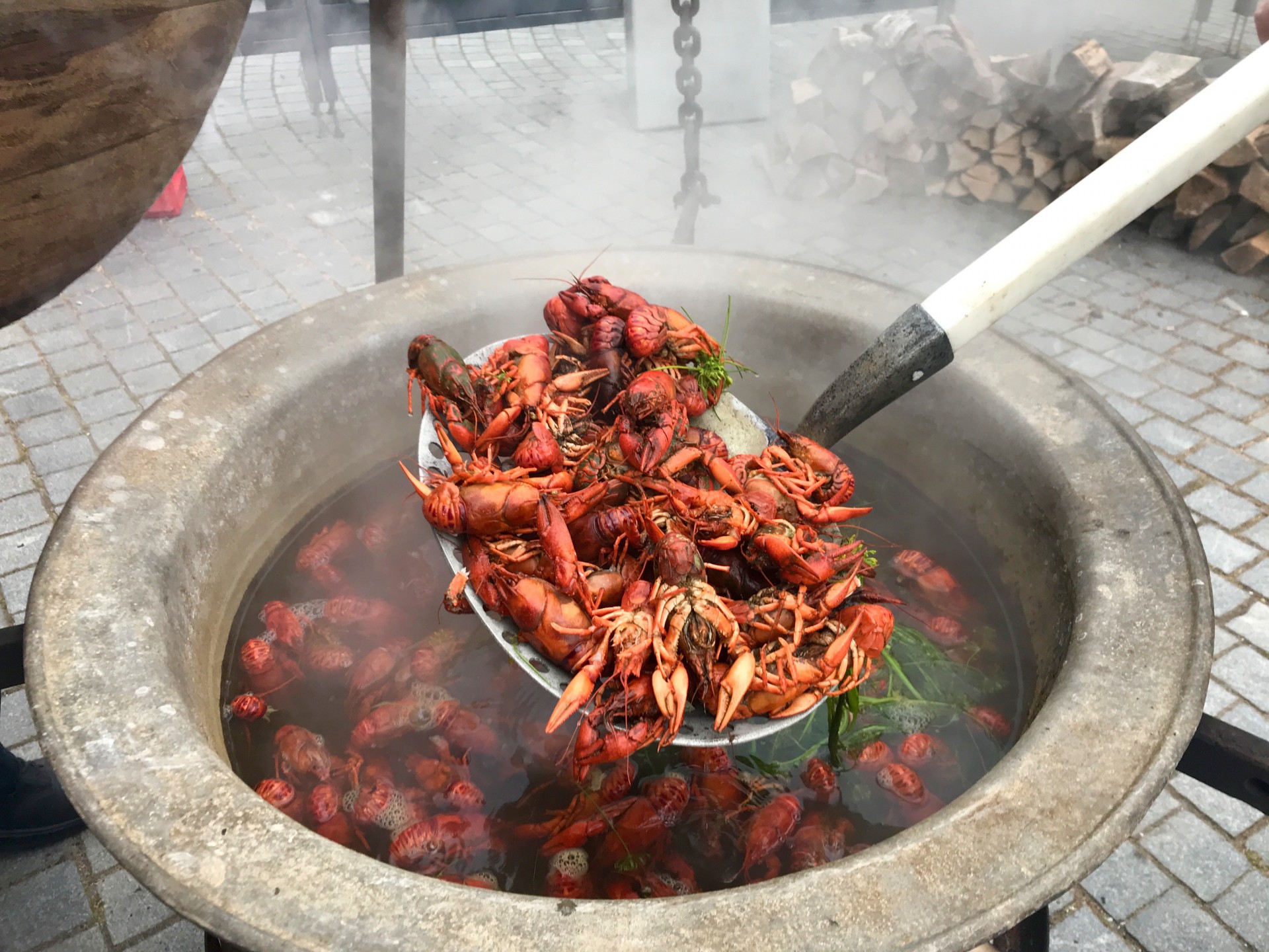 Vor der Gaststätte brodelte bereits bei der Ankunft der Besucher ein großer Kessel über einem Feuer, wenig später landeten die ersten Krebse im Wasser. Ganz besondere Krebse, denn sie kamen nicht, wie häufig üblich, aus dem Ausland, sondern aus der Müritz. „Unsere Fischer haben sie eine Woche lang gesammelt. Sie sind wirklich eine Delikatesse“, so Jens-Peter Schaffran als Geschäftsführer der Müritzfischer.
