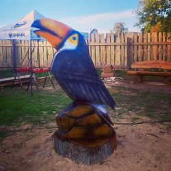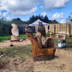 Diese Aktion hat schon viele neugierige Besucher angezogen, und die ersten Ergebnisse können sich wirklich sehen lassen: Seit dem Wochenende entstehen im Tiererlebnispark Grabowhöfe Kunstwerke aus rustikalen Eichenstämmen, und der „Virtuose an der Kettensäge“ wird in dieser Woche noch weitere Hingucker zaubern. Ein Ferien-Ausflug nach Grabowhöfe lohnt sich also doppelt. Und vielleicht ist dann noch Zeit, um bei den Humboldtpinguinen vorbei zu schauen. Dank der Logopädie Kid’s Voice von Inga Bauch, die eine Patenschaft übernommen hat, konnte das Schwimmbecken erneuert werden. Darin fühlt sich auch „Findelkind“ Hugo wohl, den das Team des Erlebnisparkes per Hand aufgezogen hat.