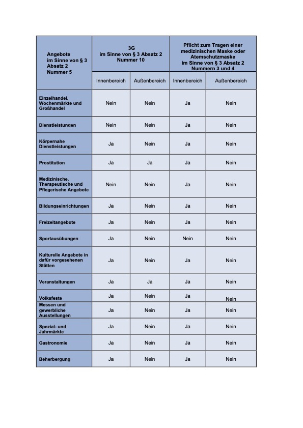 Die Fortschreibung der 3-G-Regel entsprechend den Übergangsvorschriften (alternativ die Möglichkeit des 2G-Optionsmodells, dann Verzicht auf Maske oder Abstand möglich);