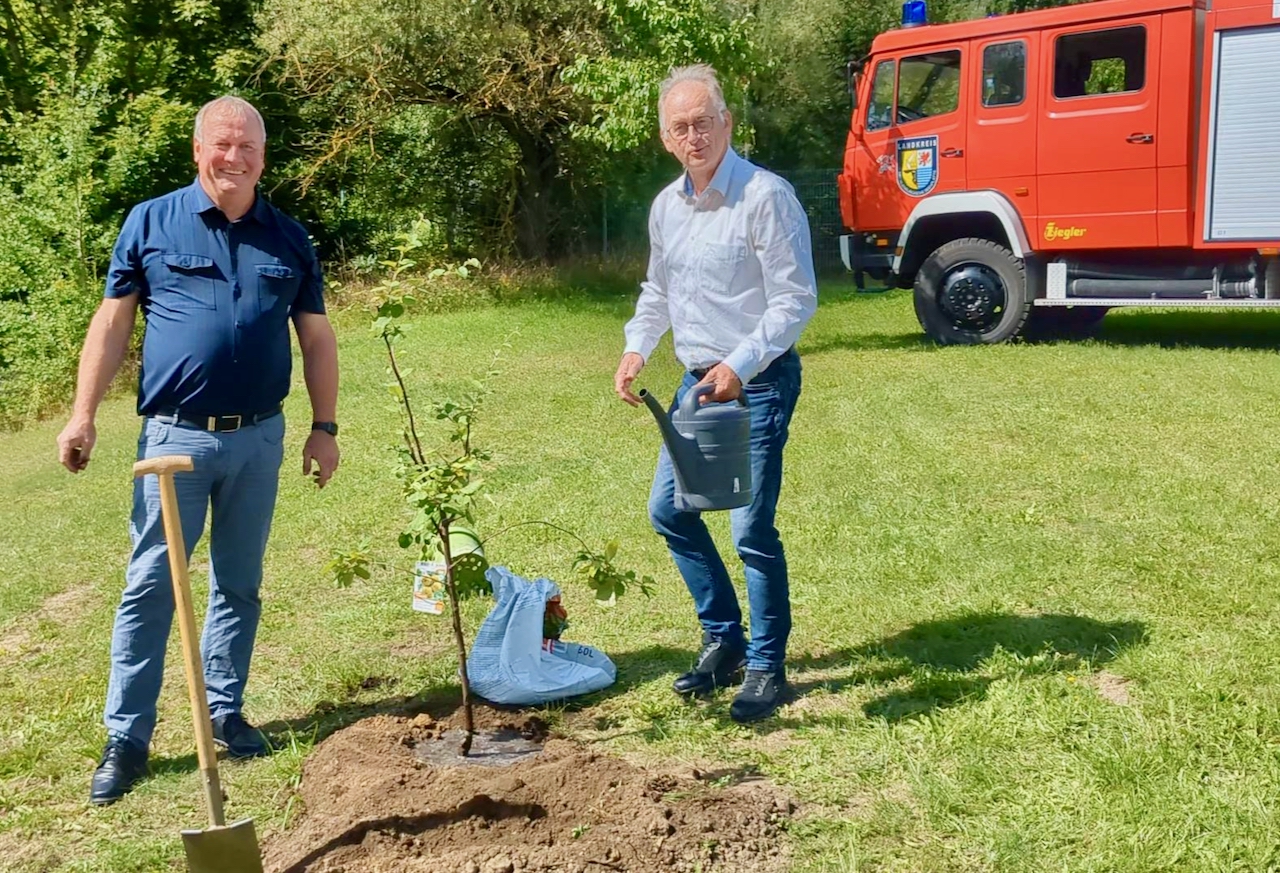 Und für das Pflanzen von einem Baum tritt natürlich pressewirksam auch noch der alte und der neue Herr Landrat mit zum Fototermin auf.