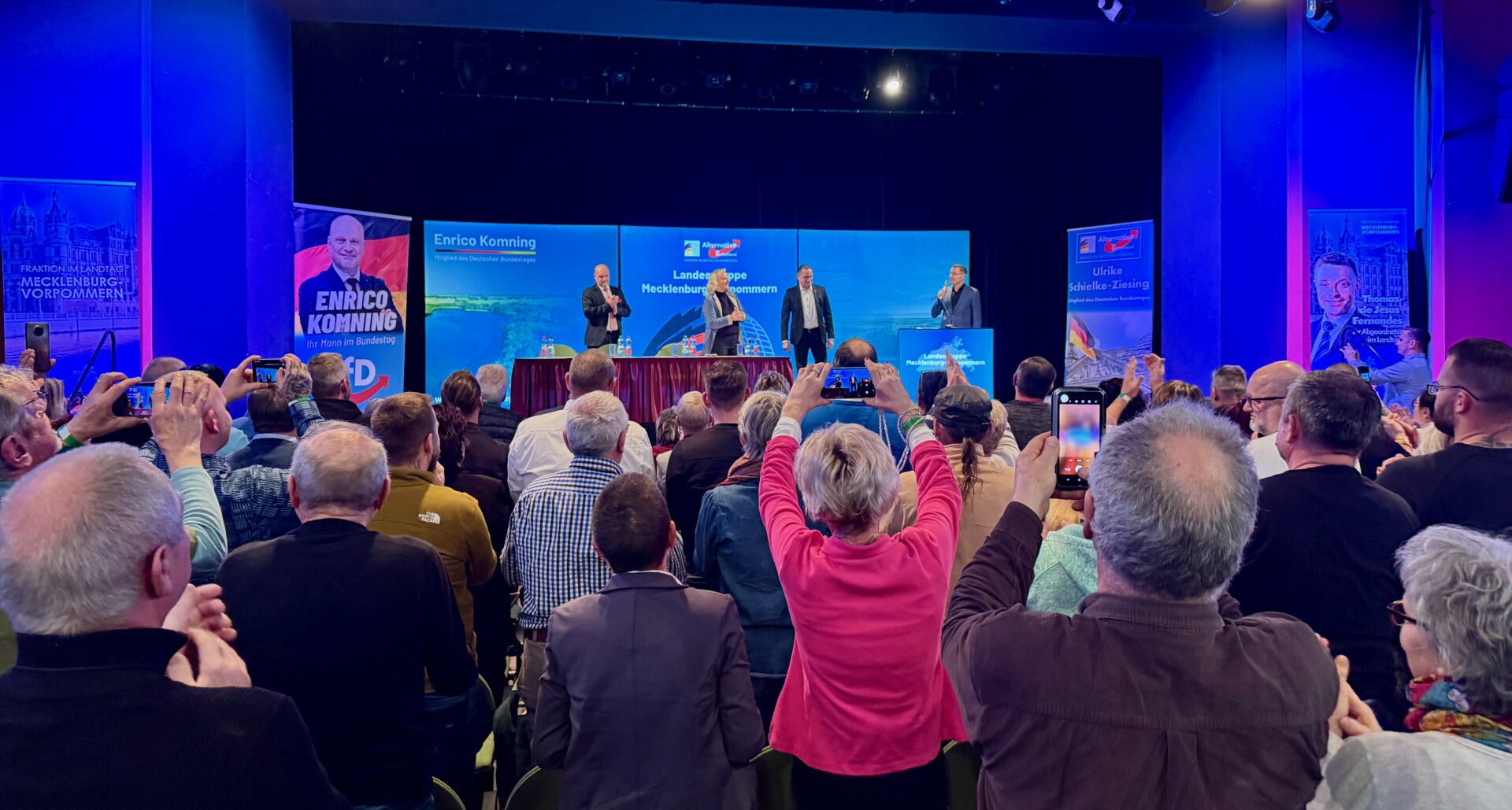 Ulrike Schielke-Ziesing, seit 2017 im Bundestag, warf den Altparteien nach dem Ampel-Aus Arbeitsverweigerung vor, erklärte, dass die Hälfte der Bürgergeld-Empfänger Migranten seien, sprach von Armut bei vielen Rentnern und kritisierte die Kriegsrhetorik von CDU, SPD und Grünen. Das lastet auch der Neubrandenburger Enrico Komning der CDU an und meinte zugleich, dass die CDU, die aktuellen Umfragen zufolge, als Wahlsieger hervorgehen könnte, AfD-Anträge kopiere und ihr Fähnlein in den „blauen Wind“ hängen würde. Die AfD wolle stärkste Kraft in Deutschland werden und könnte sich dann die CDU als Junior-Partner mit einer Kanzlerin Alice Weidel vorstellen.