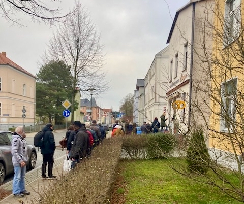 Hier stehen vor allem Einheimische geduldig an, die Silvester die leckeren Berliner des Traditionsbäckers Bünger genießen wollen.