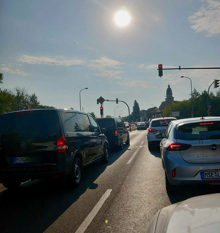 Der Verkehr staut sich momentan in beide Richtungen, aus Neubrandenburg kommenden zeitweise bis zum Ortseingang.