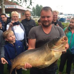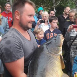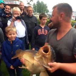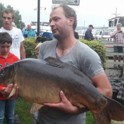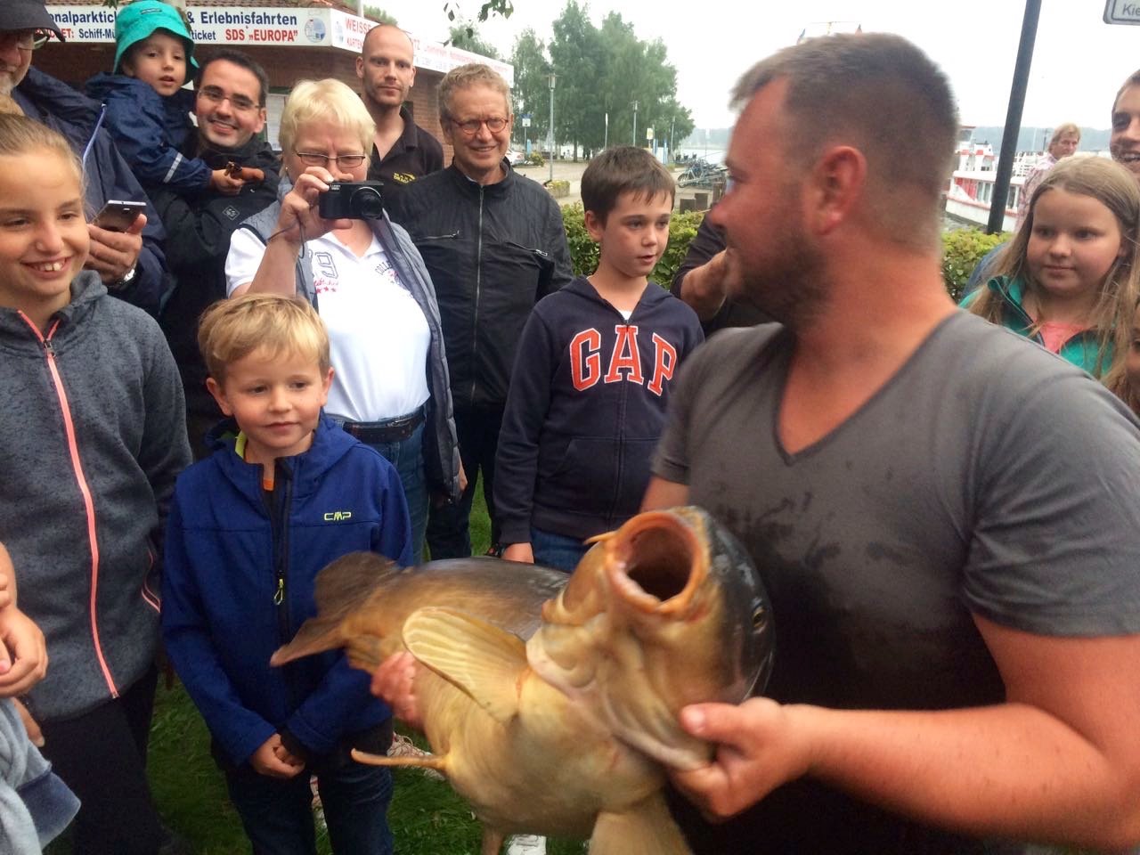 Der Karpfen wiegt schätzungsweise 15 bis 20 Kilo und ist in diesem Bereich sicherlich ein Zufallsfang.