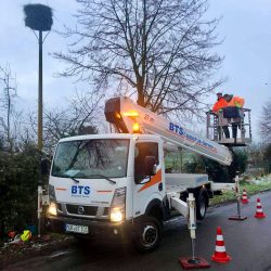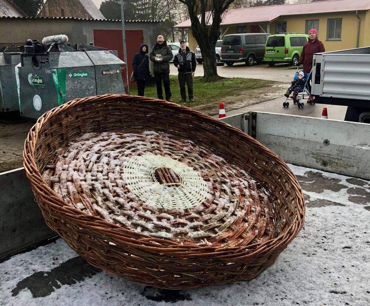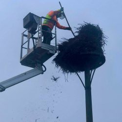 „Der alte Horst wurde seit 1994 immer höher und drohte, nun abzustürzen. Aus diesem Grund haben wir das Nist-Material am Wochenende abgenommen und einen neuen Korb aufgesetzt“, berichtete Stefan Garmshausen.