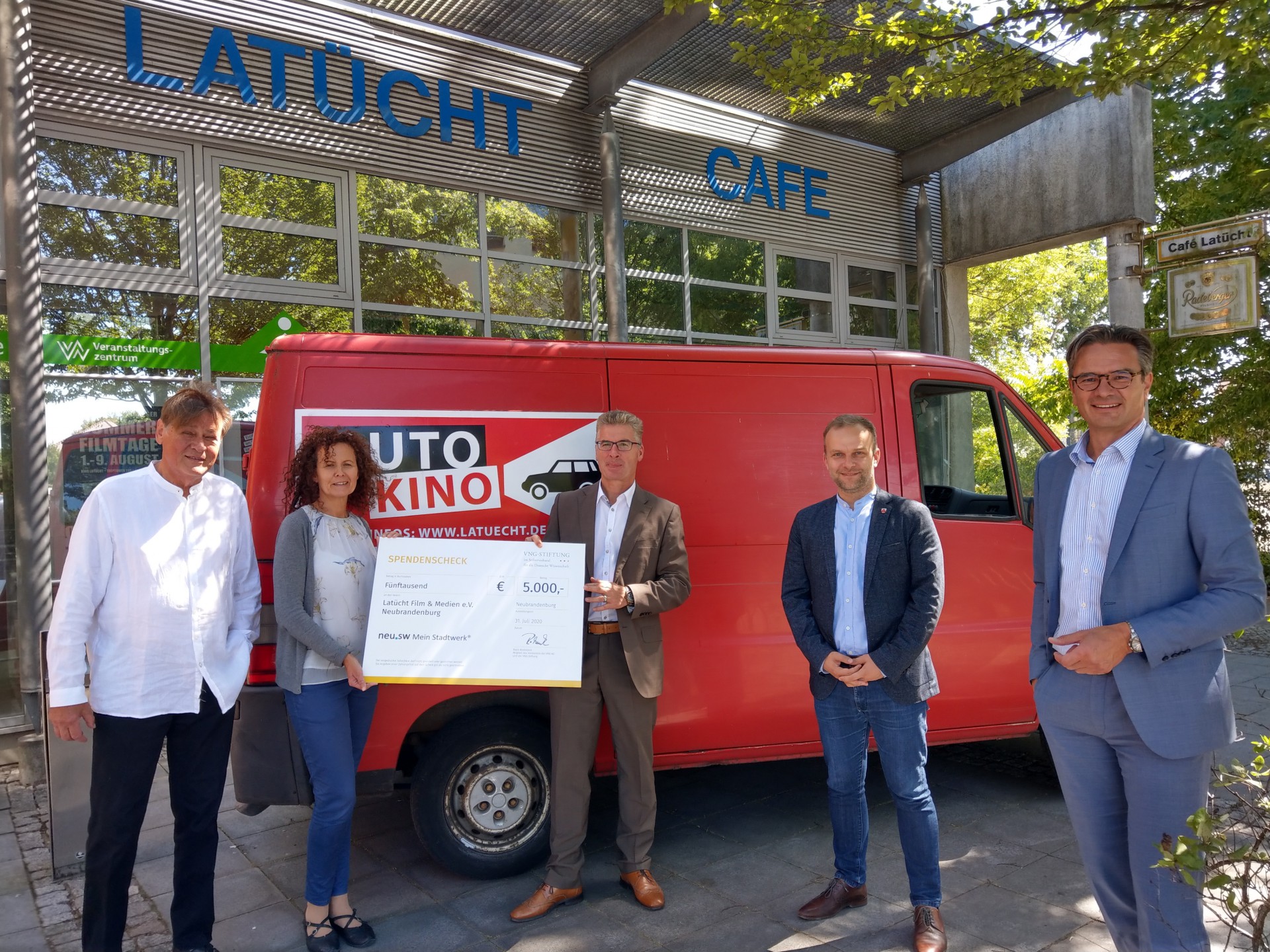 Der Neubrandenburger Latücht-Verein kann sich den Traum von einem neuen Transporter für sein mobiles Kino erfüllen. Die Bitte um finanzielle Unterstützung für das Fahrzeug hatte in den vergangenen Wochen eine Spendenwelle ausgelöst. Das von neu.sw unterstützte Crowdfunding brachte fast 4 500 Euro ein. Und jetzt übergab auch die VNG-Stiftung (Verbundnetz Gas AG) noch einen großen Scheck.