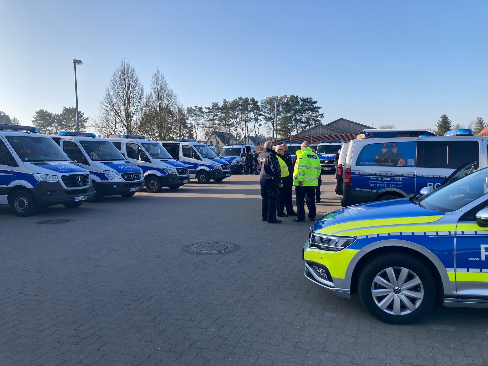 Nachdem die Bewohner in der Nähe des Bombenfundes in Rechlin bis 9 Uhr Zeit hatten, den Bereich zu verlassen, kontrollieren zahlreiche Polizisten jetzt, ob sich in der Gefahrenzone wirklich niemand mehr aufhält.
