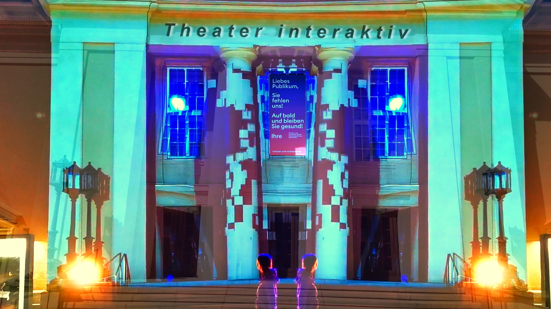 Die TOG plant, den Zuschauern zur Wiedereröffnung der neuen Spielzeit ab Anfang September diese lebendige Theaterfassade regelmäßig zu präsentieren, nach jeder Abendvorstellung ab 22 Uhr.