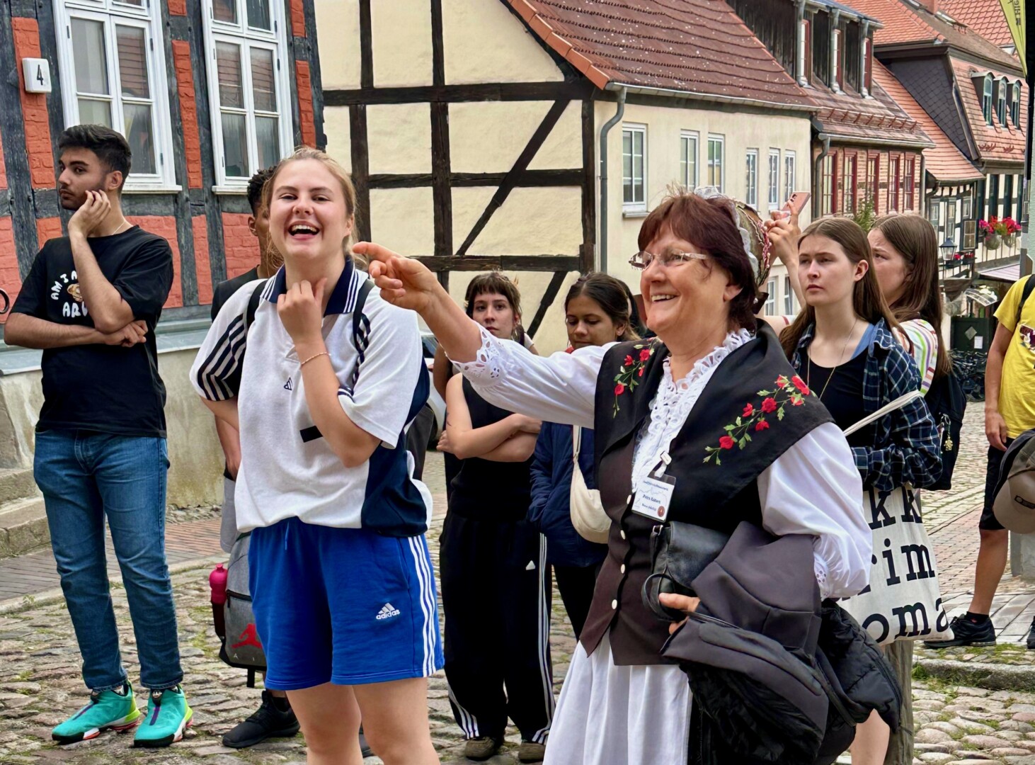 Der in Waren ansässige Lions Club Müritz hatte das Programm in der Müritzstadt organisiert und finanziert. Höhepunkt war ein Drachenbootrennen auf dem Tiefwarensee. Der Müritzsportclub hatte das Drachenboot gestellt und gab Unterstützung durch einen Trainer, der mit an Bord war. Rekordverdächtig war die Zahl von 14 Nationen, die dann gemeinsam ruderten: Neben der deutsche Reiseleiterin ruderten dann junge Frauen und Männer aus Bulgarien, Dänemark, Island, Italien, Kanada, Thailand, Indonesien, Finnland, Brasilien, Mexiko, Indien, Israel und der Türkei. Aus letzterem Land kam Daphne, die die Trommel schwang. Je länger die einstündige Tour dauerte, desto synchroner wurden die gemeinsamen Bewegungen.