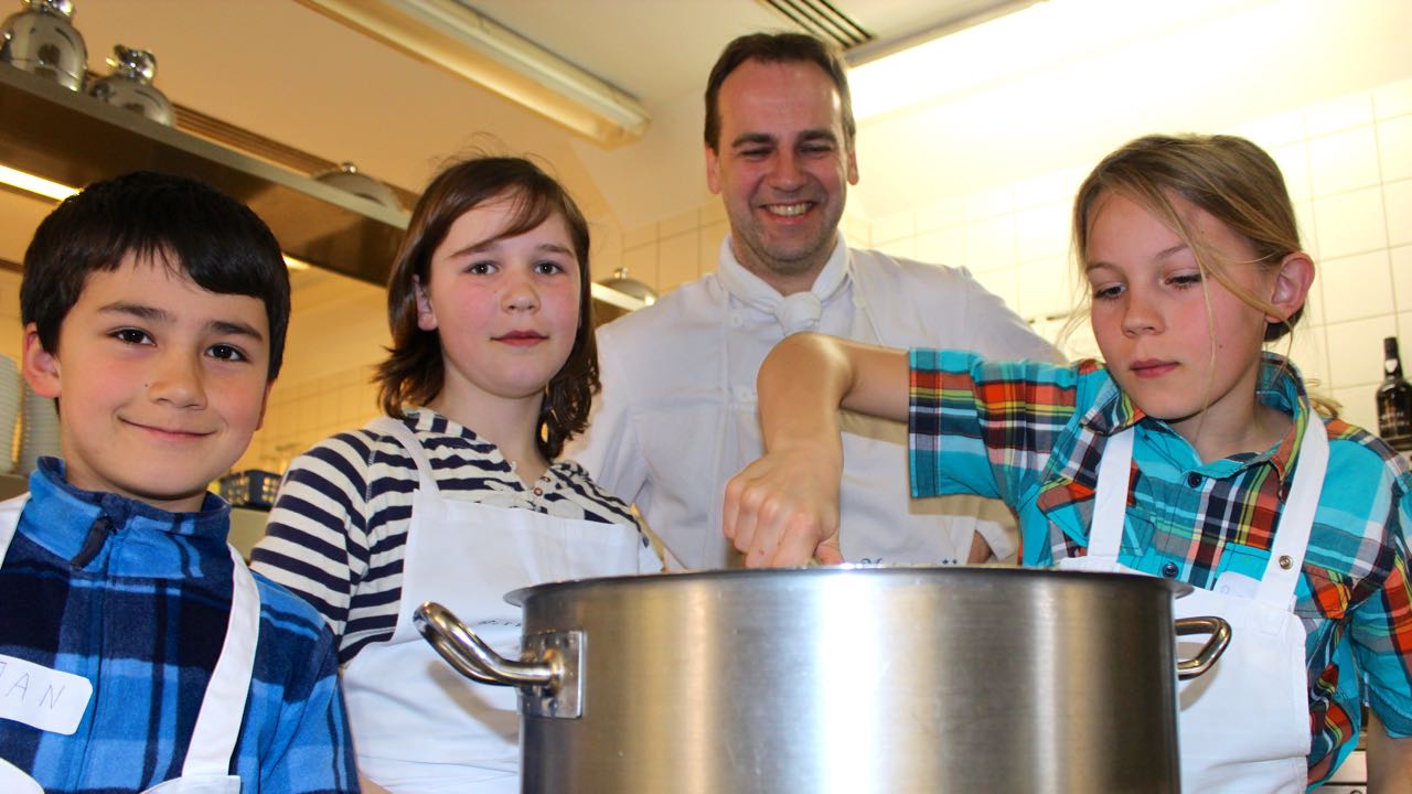 Foto oben/Archiv: Auch der Besuch der Küche – hier bei Hendrik Türk im „Kleinen Meer“ – gehört zum Kniggekurs der Viertklässler