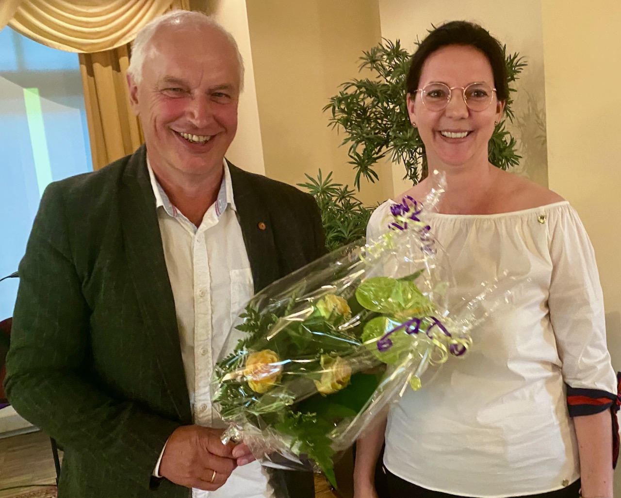 Foto im Text: Kati Strasen hat den „Staffelstab“ an Ronald Schützler übergeben, der jetzt ein Jahr lang Lionspräsident sein wird.