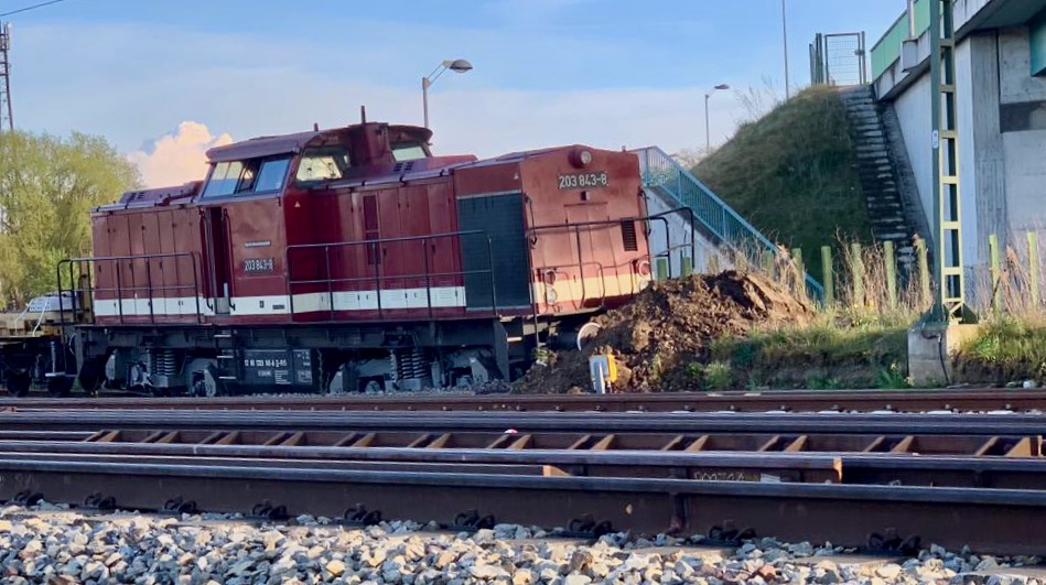 In der Nähe des Warener Bahnhofes in Höhe der Brücke Teterower Straße ist heute Abend eine Lok, die Schwellen im Gepäck hatte, im wahrsten Sinne des Wortes übers Ziel hinaus geschossen.