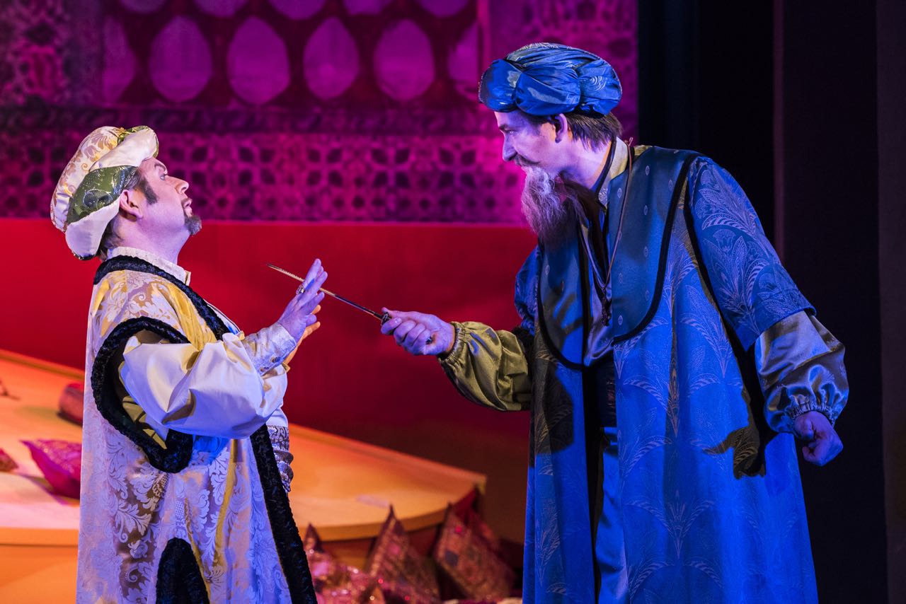 In seiner Liebe entlässt der Kalif seinen kompletten Harem, weil er Marsinah heiraten will. Da hat aber der gefürchtete Wesir etwas dagegen, auch wenn seine Frau, die bauchtanzende und männer-affine Lalume (Laila Salome Fischer) eigentlich das Sagen hat. Um es kurz zu machen, der Poeten-Bettler schafft es bis in den Palast, wie bei Märchen üblich. Auch die bis an die Zähne bewaffnete Wache kommt zum Einsatz.