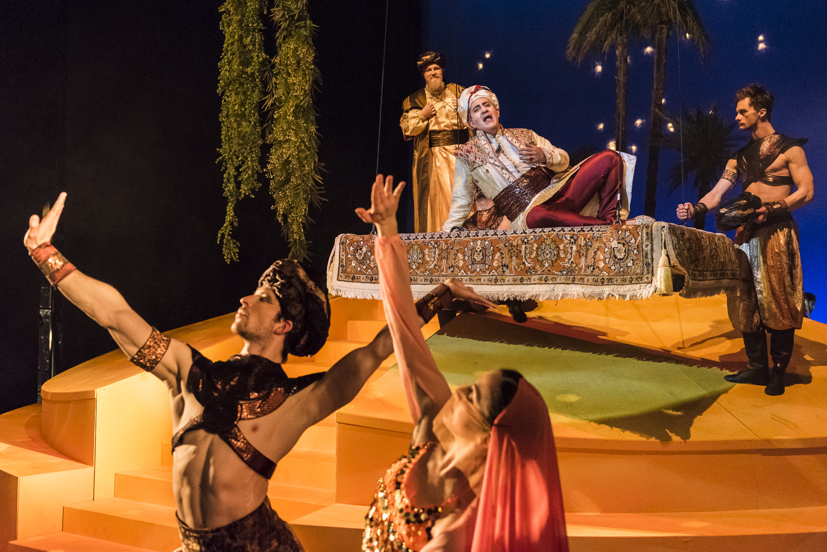 Mit großem Orchester, mehr als 30 Schauspielern, Sängern und Tänzern mit phantasievollen Kostüme, bauchtanzenden Prinzessinnen und viel Geist fühlt sich der Zuschauer in eine andere Welt entführt. Kostprobe: „Ich weiß gar nicht, wie ich Euch beschäftigen soll“, sagt der Bettler als er zum Emir ernannt wird, zu seinen ersten drei Haremsdamen. „Euer Wort ist uns Befehl“, entgegnen die Schönen. „Dann werden wird uns blenden verstehen“, meint der Poeten-Bettler.