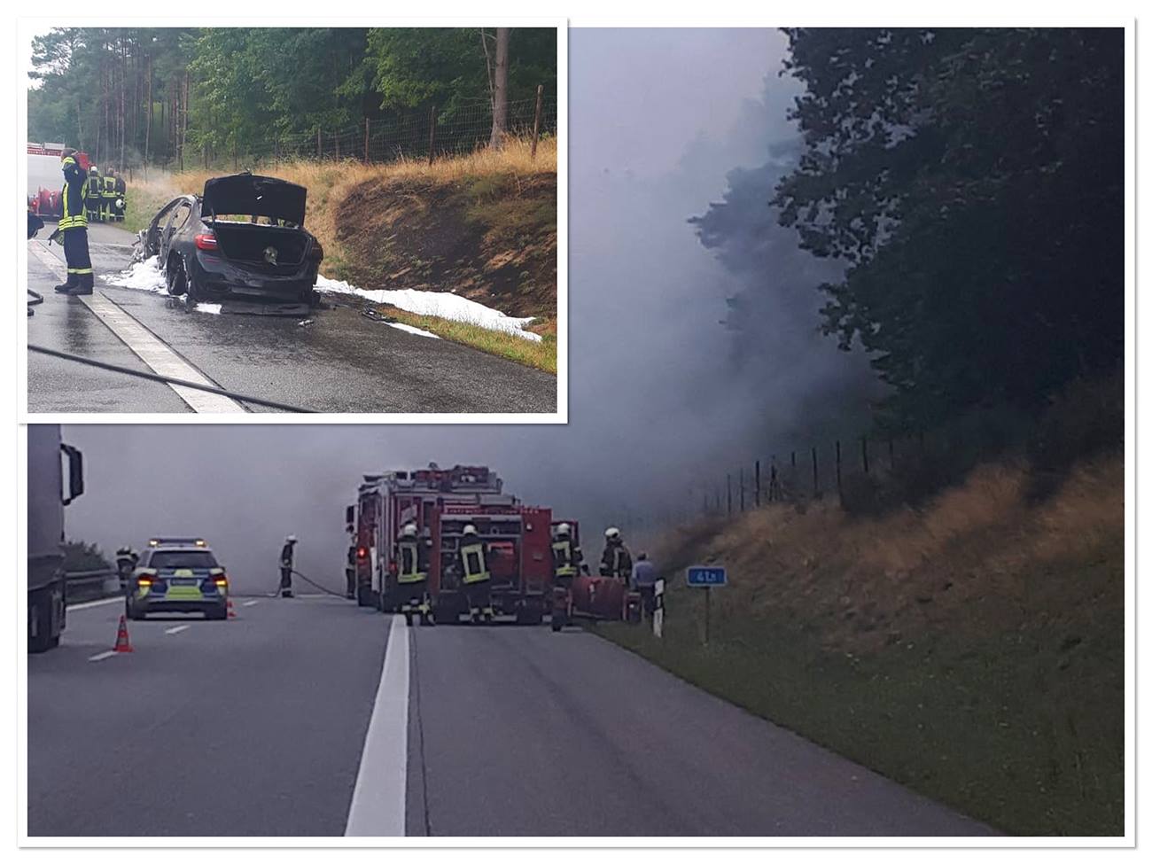 Auf der Bundesautobahn 19 ist heute Vormittag kurz nach 9 Uhr ein 7er BWM komplett ausgebrannt. Der Fahrer, der mit seinem BMW in Richtung Rostock unterwegs war, blieb unverletzt. Der Mann bemerkte auf Höhe des Kilometers 41,5 wie plötzlich Flammen und Rauch aufstiegen und stoppte sein Fahrzeug auf dem Standstreifen.
