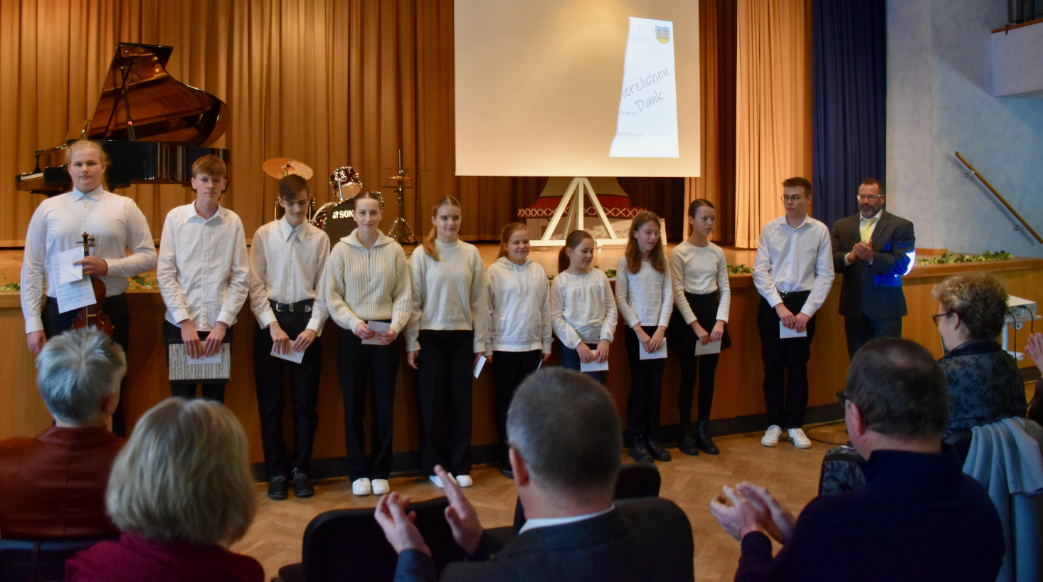 Ein vielfältiges Programm, gestaltet von der Kreismusikschule unter der Leitung von Claudia Kaul, begleitete die Veranstaltung. Claudia Kaul führte zudem als Moderatorin durch das Neujahrsgespräch, das durch den Auftritt des Kinderhorts „Schülergarten“ mit ihrem bezaubernden „Malchow Lied“ bereichert wurde.