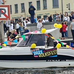 Die Malchower sind eben ein besonderes Völkchen. Sie stellen seit vielen, vielen Jahren das beliebteste und beste Volksfest weit und breit ohne fremde Hilfe auf die Beine und sie lassen sich auch nicht durch die diesjährige Absage davon abbringen, Spaß zu haben. Heute Abend haben unter anderem der Spielmannszug und viele geschmückte Boote für Stimmung an der Drehbrücke gesorgt.