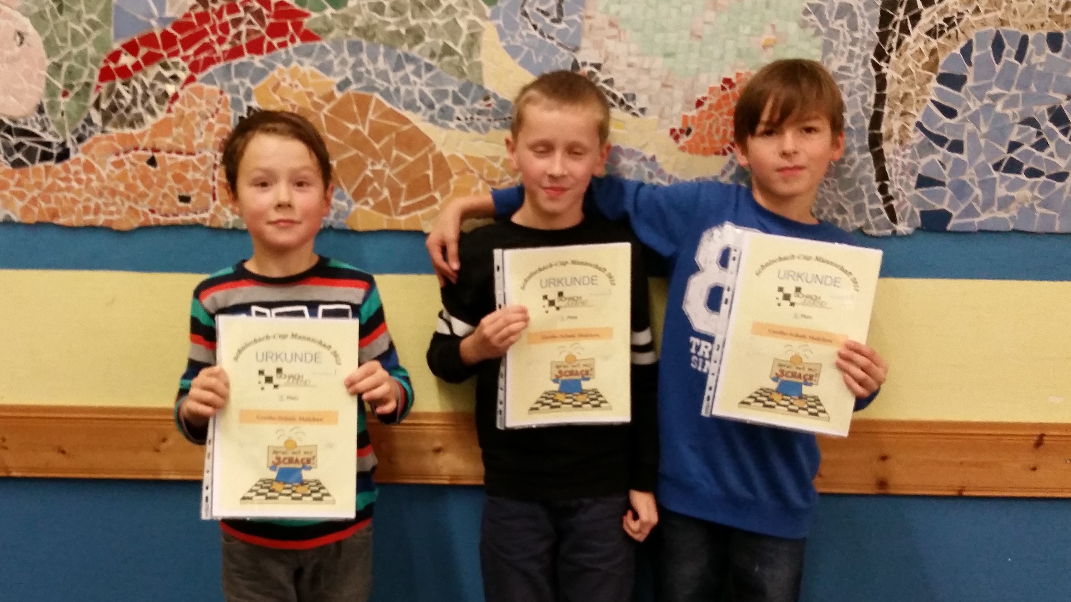 Die achtjährigen Grundschüler Nils Prey, Tom Karff und Milan Wilken (Foto von links nach rechts) haben vor wenigen Tagen als Mannschaft der Goethe-Schule Malchow am Schulschach-Cup in der Wettkampfklasse I (Grundschulen Klasse 1-4) als Viertplatzierte unter 26 teilnehmenden Mannschaften eine Medaille knapp verpasst. A